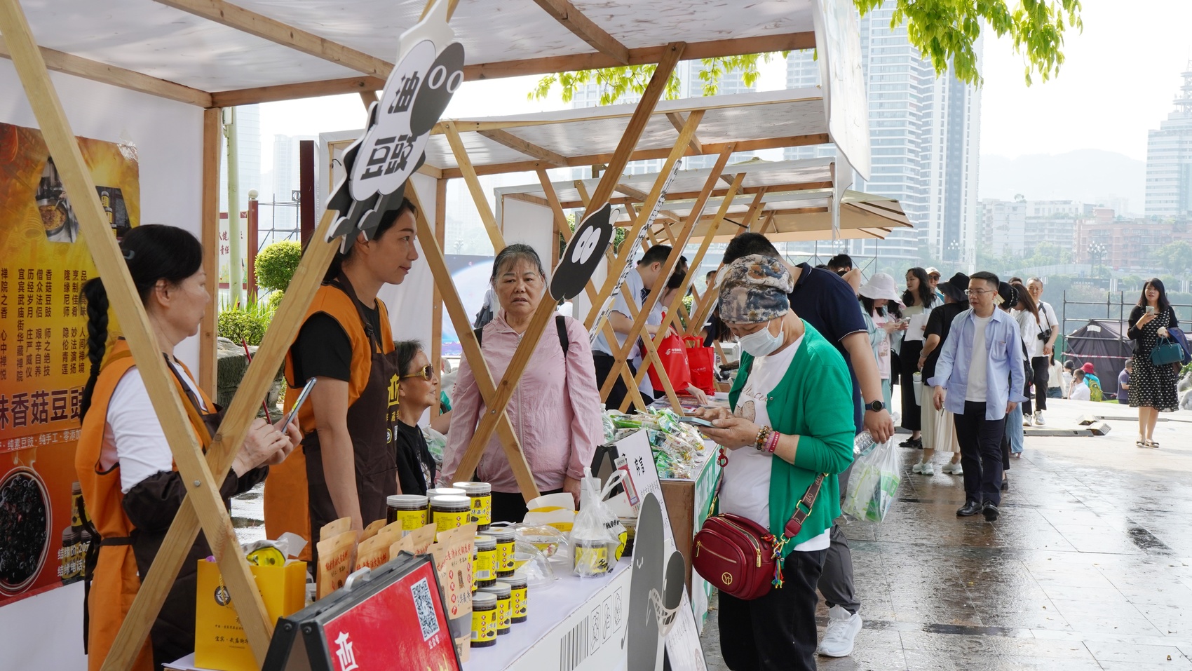 为提升游客出行体验,“翠旅通”智慧文旅平台在活动当天上线。据介绍,该平台集虚拟导览、行程制定、实时客流查询、预订旅游产品、特产直购等功能于一体,能为游客提供便捷化服务。此外,活动现场还设置了两大主题展区,兰香斋毛条牛肉、李庄白糕等特色产品琳琅满目,吸引了不少市民前来驻足购买;蜀南竹海竹编、兴文石海苗绣等特色文创产品同步亮相,展现非遗与现代生活的创意融合。