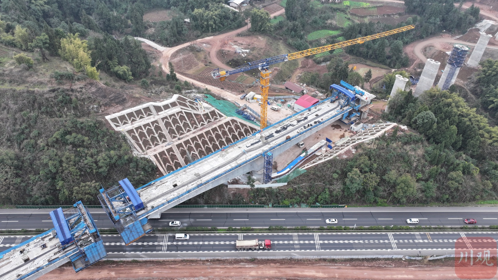 位于蓬溪县赤城镇长虹村的成达万高铁跨沪蓉高速特大桥连续梁建设现场。谭皓摄
