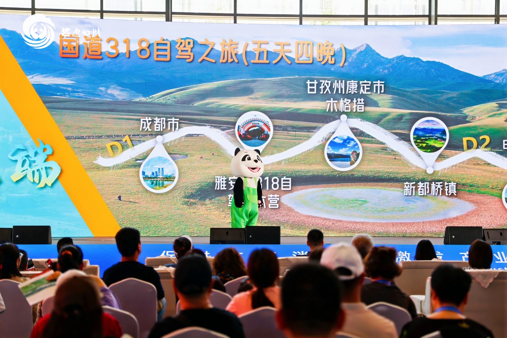 从茶馆晨光中的闲适惬意,到雪山星河下的壮美辽阔;从古蜀文明的神秘莫测,到熊猫“滚滚”的憨态逗人;从川西云端的壮阔景观,到街巷市井的烟火气息——现场发布的“安逸四川·乐在五一”十条精品线路,以山水作笔,以文化为墨,绘就安逸四川的千姿百态。来自巴中、遂宁、雅安、自贡、眉山以及四川旅投集团的文旅推介官,也以诗意化演绎展现当地特色文旅资源,呈现游在四川的丰富体验。
