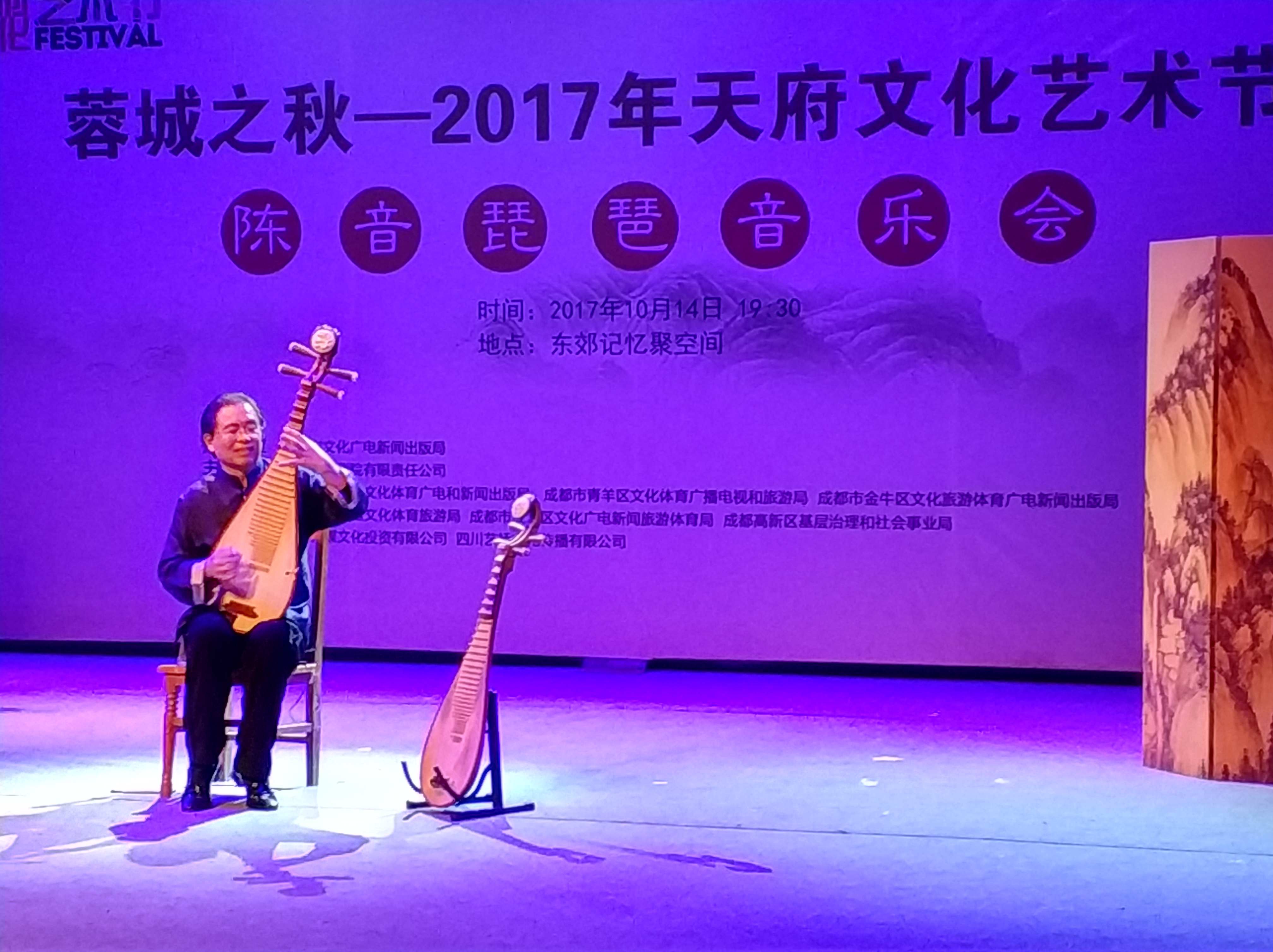 35年后,从“蓉城之秋”走出的陈音已变成著名琵琶大师,再度回到“蓉城之秋”。10月14日晚,“蓉城之秋——2017天府文化艺术节”之“国乐飘香”大师音乐会陈音专场在成都开演,不少家长带着学习琵琶的小孩来现场“取经”,能容纳400人的剧场座无虚席,甚至有不少观众在过道席地而坐。