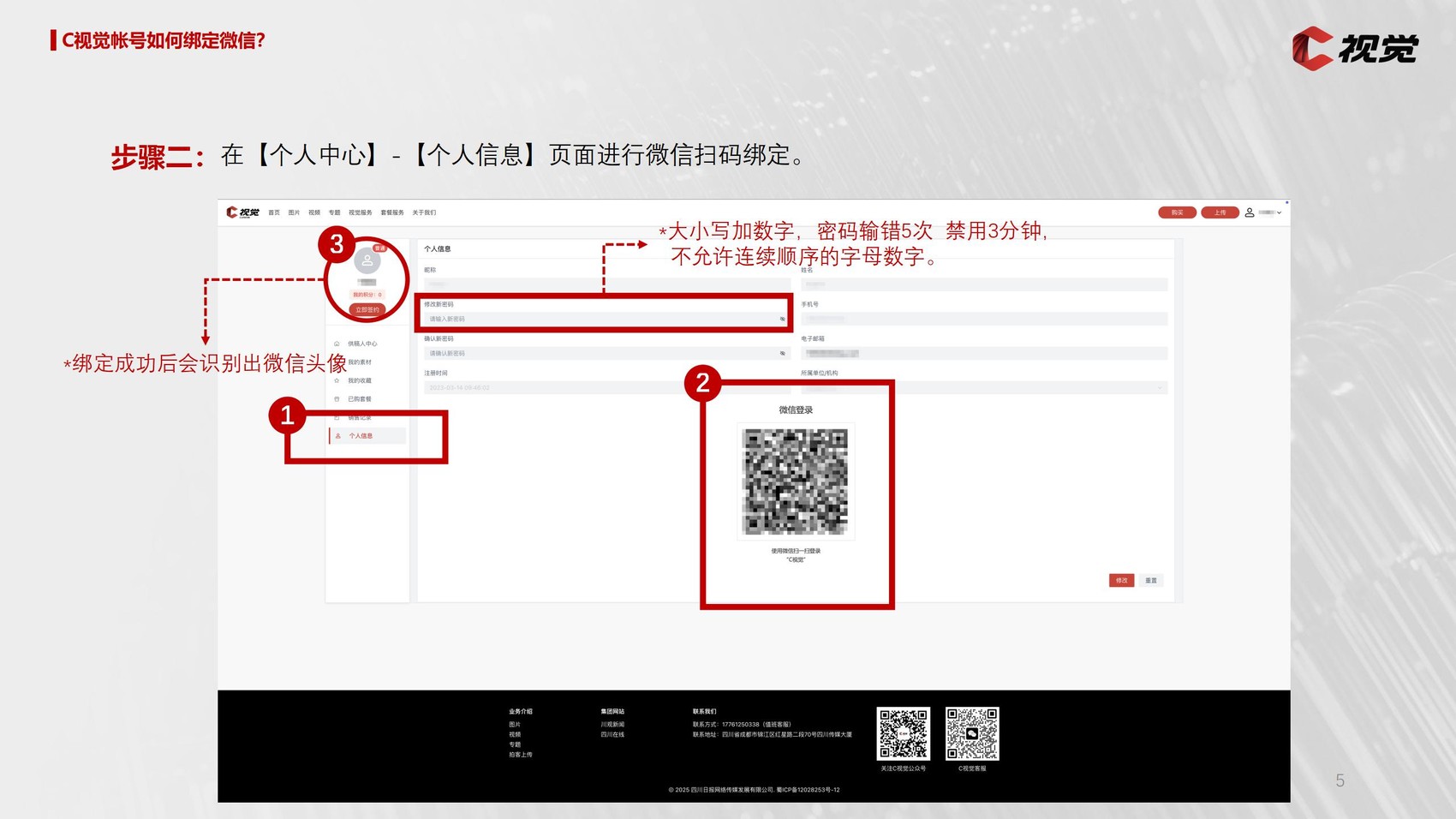 5、您在C视觉平台注册申请时提供的个人信息应准确、真实、合法有效,由于您提供的个人信息不准确、不真实、不合法等造成的损失,均由您自行承担。若您的个人信息发生变动的,请及时在C视觉平台修改您的信息。
