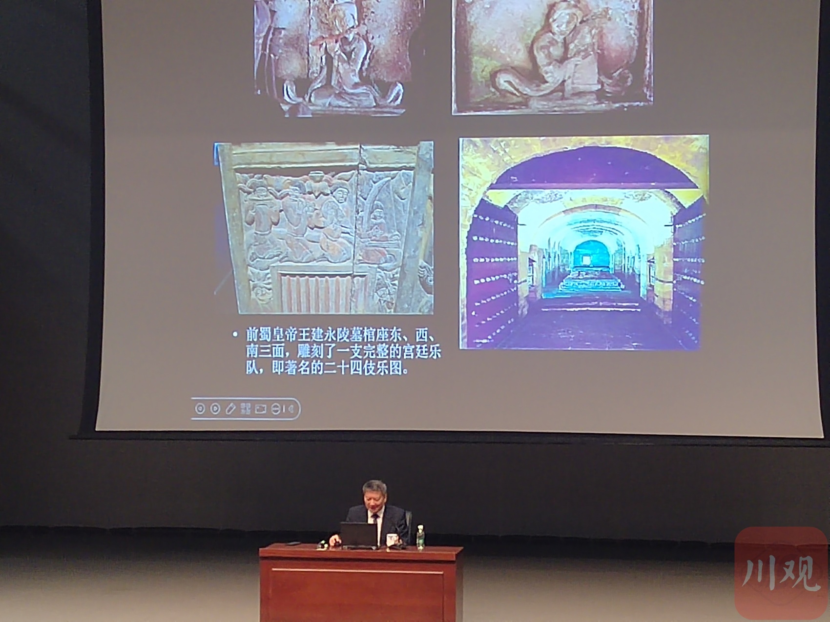 那么,成都的音乐文化起源于何时?在鼎盛的汉唐时期又呈现怎样的特点?4月19日,考古学者、四川大学杰出教授霍巍以“汉唐成都与丝路乐舞”为题,在成都博物馆与观众分享,重现一座“国际音乐之都”的灿烂往昔。