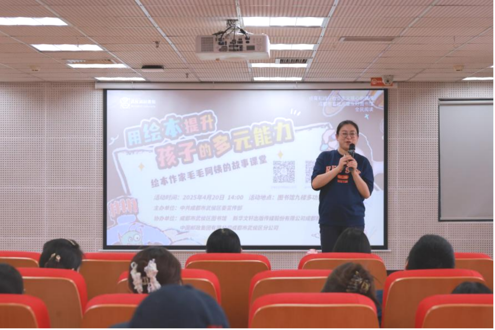 毛毛阿姨正在与孩子们分享绘本故事。(武侯区图书馆供图)