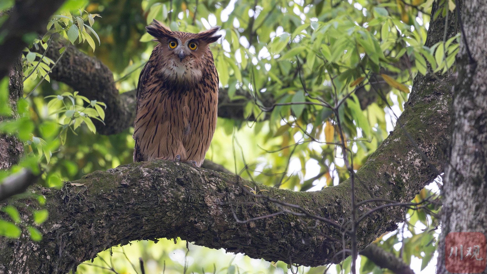 4月20日早上,都江堰景区二王庙内的一只黄腿渔鸮雏鸟从巢中坠落,引发观鸟爱好者关注。川观新闻记者获悉,这只渔鸮状态良好并未受伤,已于当日晚在原地放归。