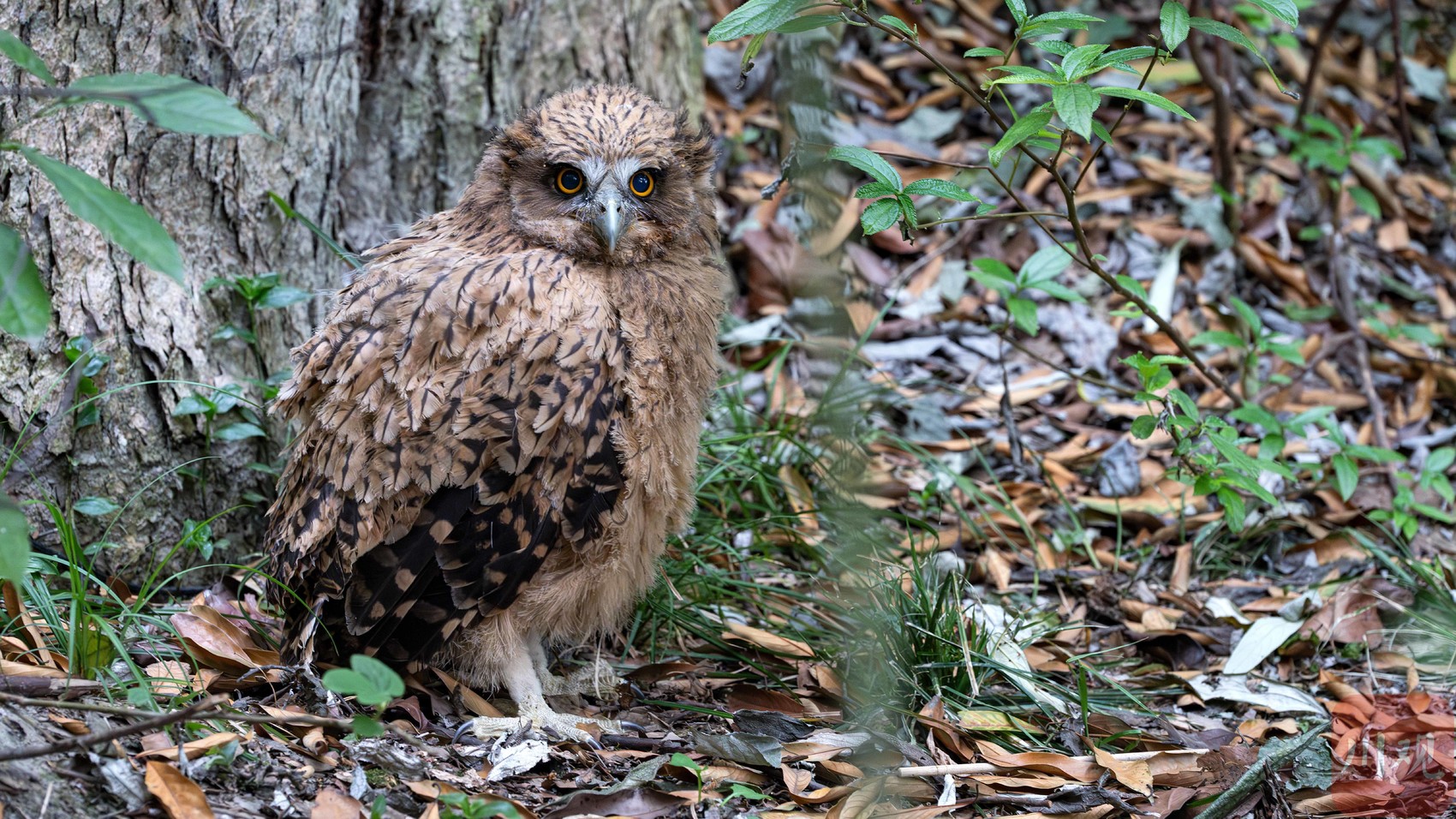 黄腿渔鸮雏鸟被救助人员原地放归。