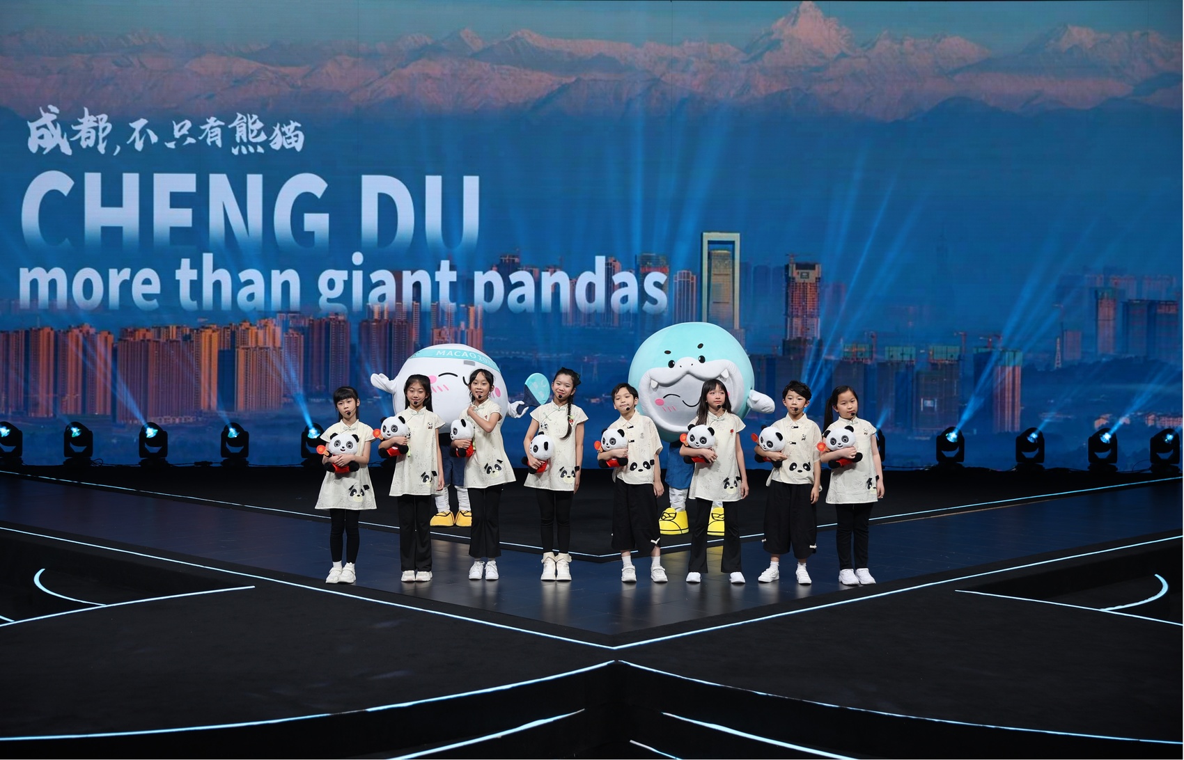 随着中国选手孙颖莎夺得女单冠军,巴西选手雨果·卡尔德拉诺斩获男单冠军,4月20日,2025年澳门国际乒联男子及女子世界杯落下帷幕。在比赛结束之后的仪式环节,随着一部《成都,不只有熊猫》的成都文旅宣传片在比赛场馆上演,拉开了赛旗交接仪式的序幕。动听的童声在赛场同步响起——8名澳门小学生合唱成都混合团体世界杯推广曲《We Are Together》,2025年澳门国际乒联男子及女子世界杯吉祥物波仔也登台亮相。在舞台光影中,以童声合唱展示体育精神代际传递,彰显了成都与澳门的城市友谊。随后,成都代表从国际乒联主席佩特拉·索林手中接过了赛旗,成都混合团体世界杯也成为国际乒联世界杯系列赛事的下一个焦点。