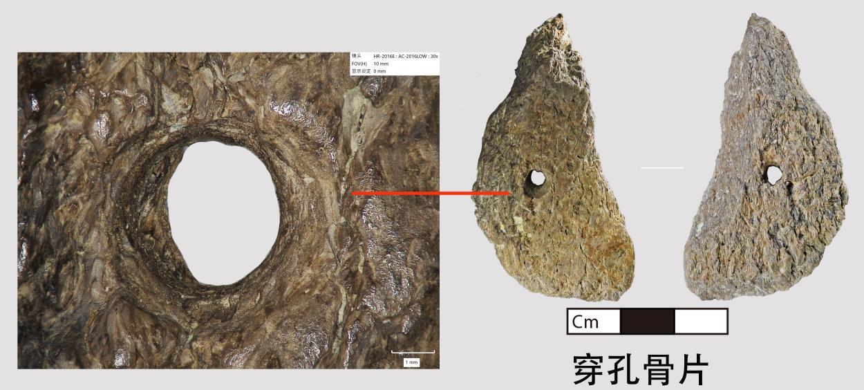 他们还把骨片和橡果穿孔,赭石上也发现了砍或削的人工痕迹。