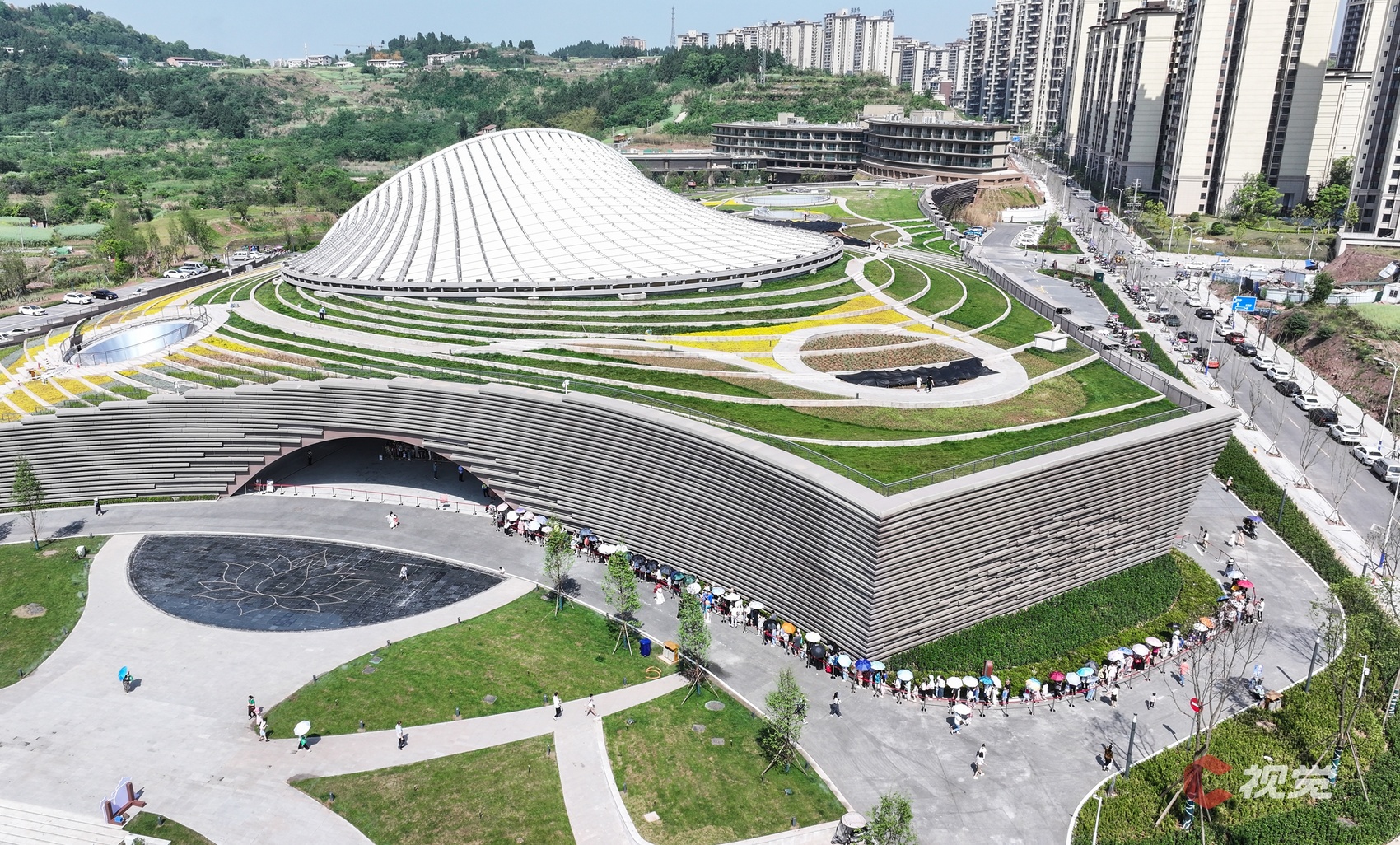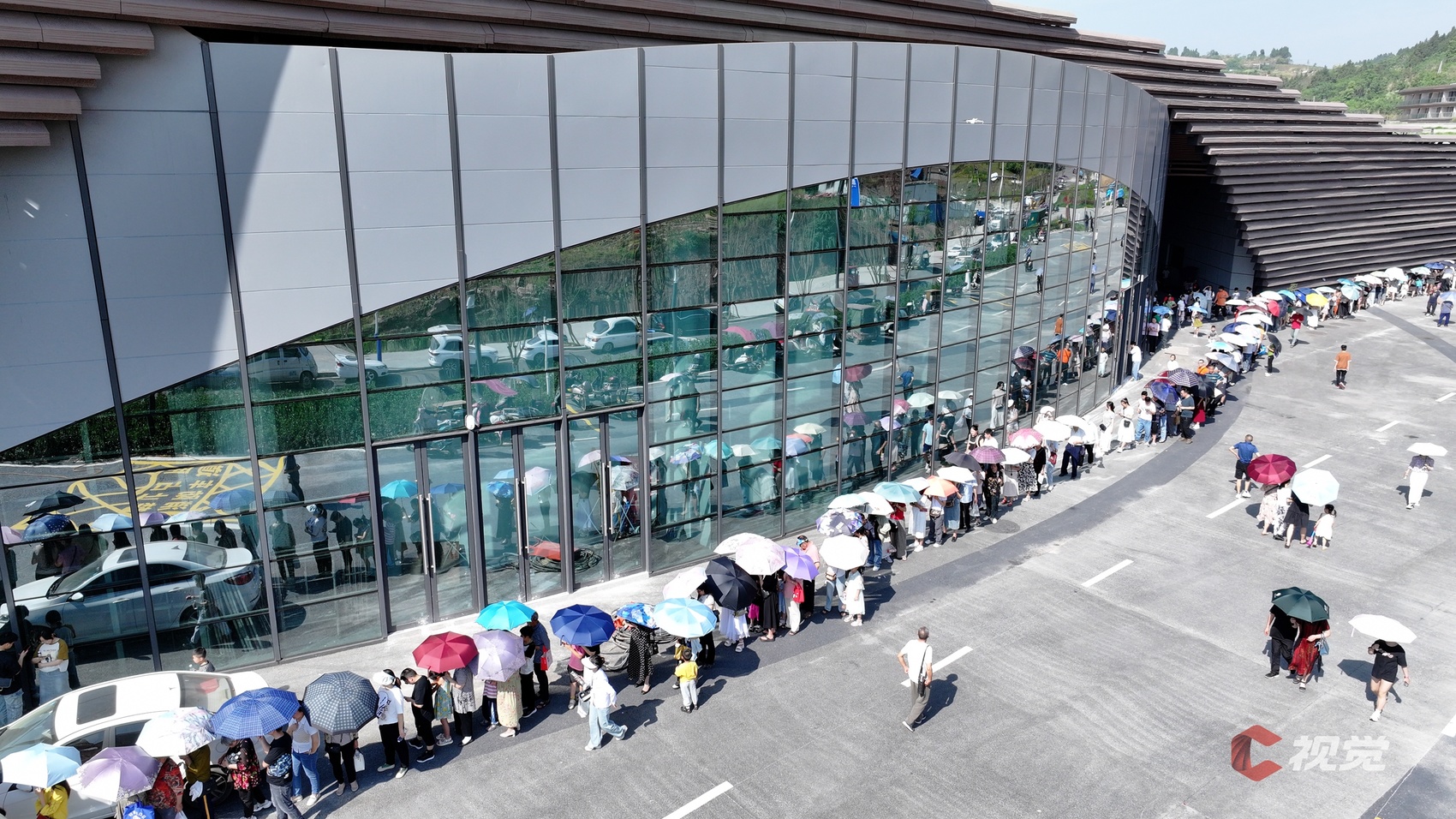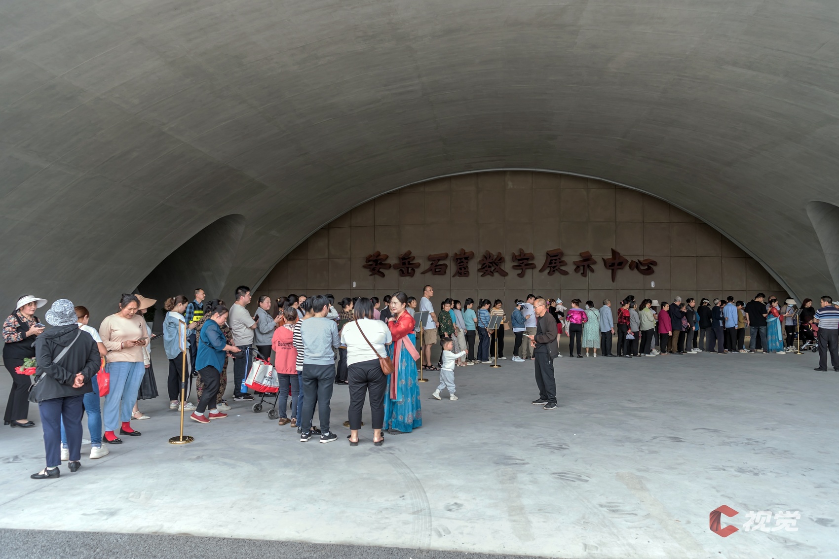 在安岳石窟数字展示中心门口,游客排队准备进入。C视觉 杨康忠 摄