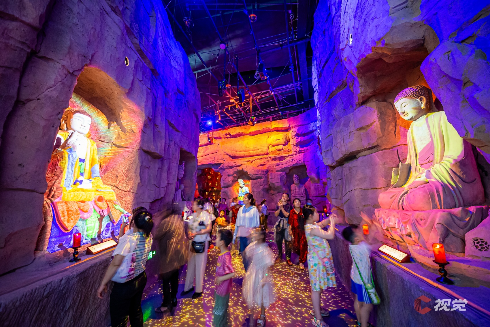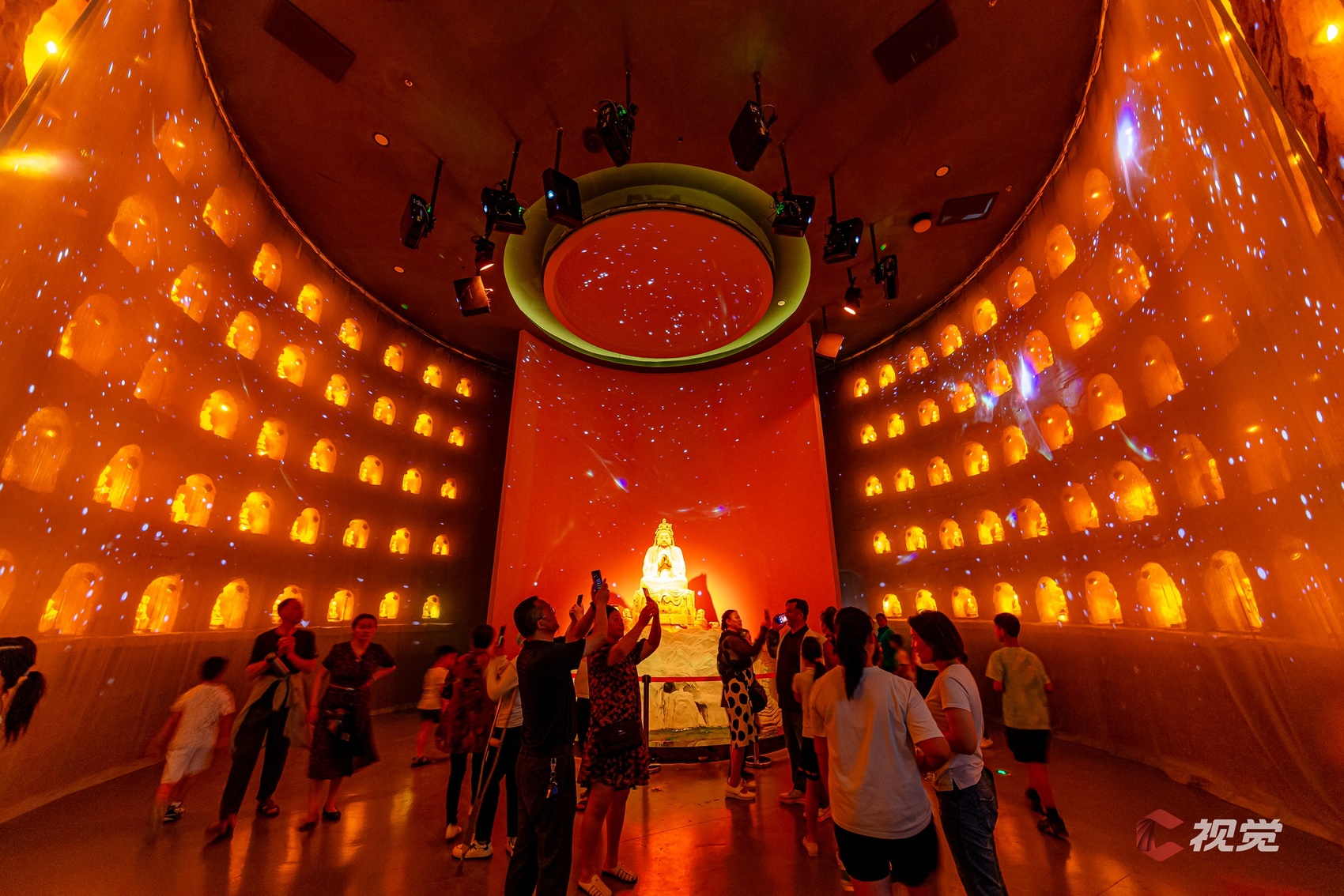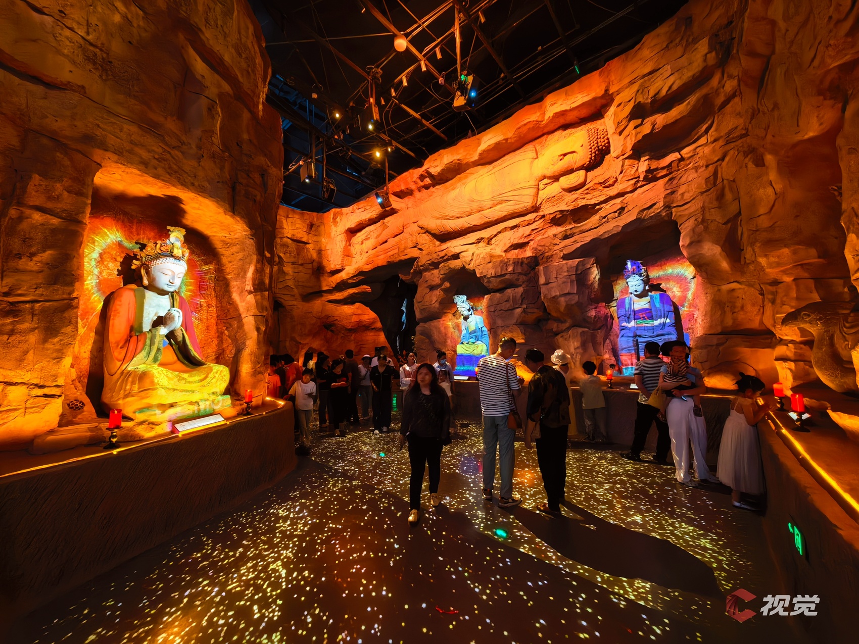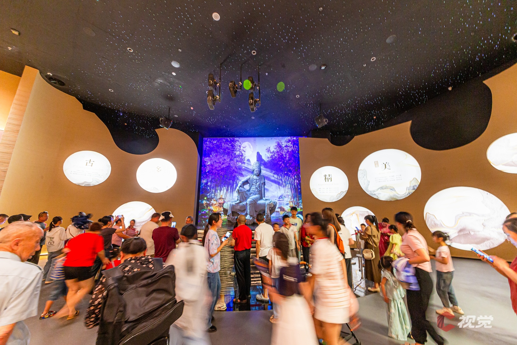 游客正在馆内沉浸式观赏数字化石窟造像。C视觉 张天富 摄