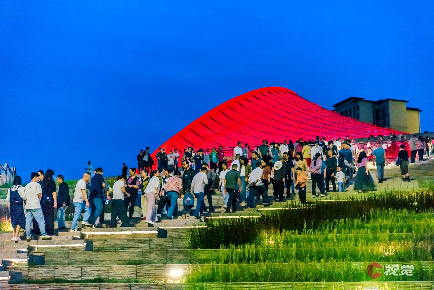 傍晚的灯光秀为石窟数字展示中心再添魅力。C视觉 杨康忠 摄