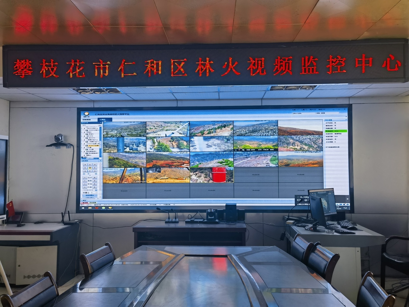 4月6日,在33公里外的仁和区林业局,6楼办公室内,林火视频监控中心的电子大屏正实时投射全域防火动态。