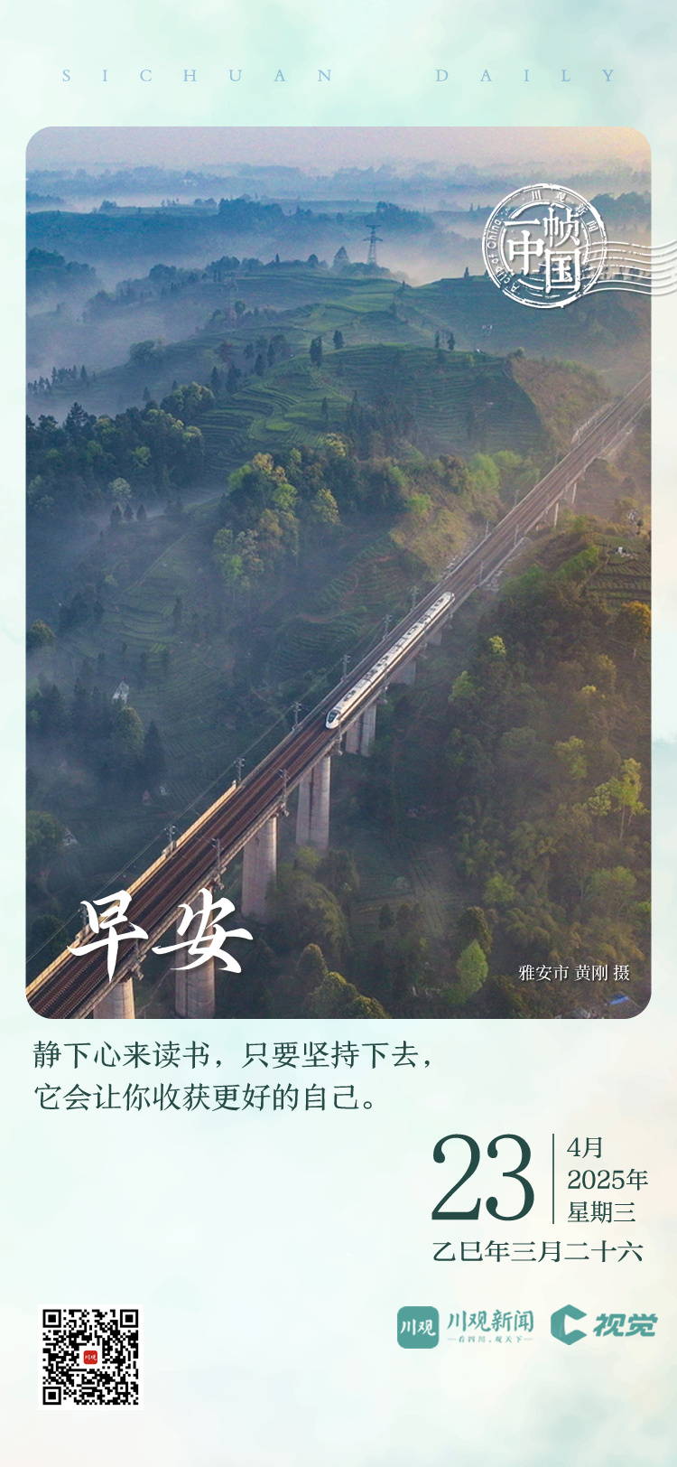 今天的《一帧中国》,川观新闻带你乘坐成雅列车穿越雅安市境内,品味如诗如画的无边美景。