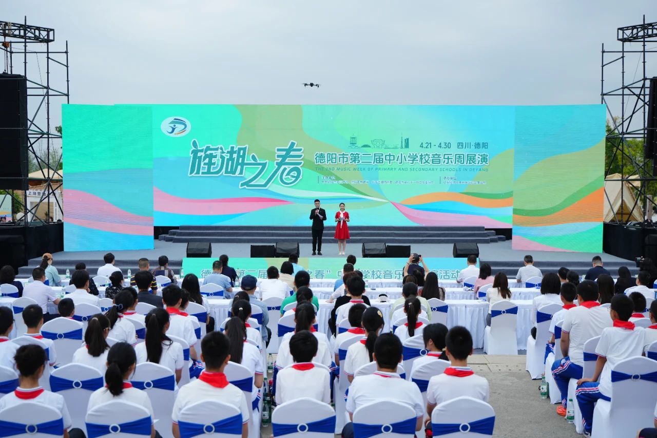 4月21日,德阳市第二届“旌湖之春”中小学校音乐周在柳梢堰湿地公园开幕。这场由市委宣传部、市教育局、团市委、市关工委共同主办、经开区社会事业局承办的美育盛宴,不仅是德阳学子展现艺术风采的舞台,更是全市深入推进美育浸润行动的生动实践。