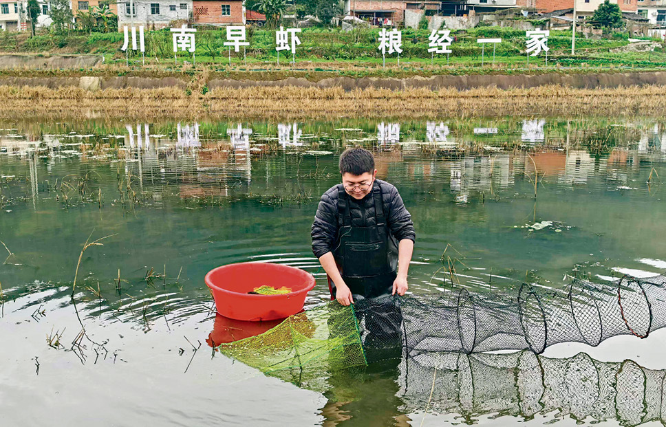龙华村党组织带头人后备干部曾浩带头发展稻虾养殖。供图/长宁组