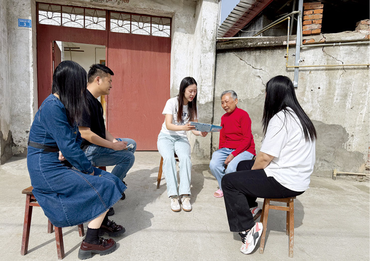 东塔社区党组织带头人后备干部甯星宇(左三)入户走访。供图/受访者