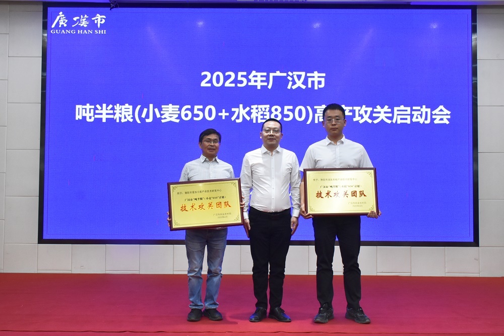 当日,广汉市召开新闻发布会启动“吨半粮”技术攻关计划。在此计划中,建立了两支高产攻关团队:一支是由水稻、小麦专家组成的科研团队;一支是由历届“粮王”组成的应用团队。通过科研团队技术攻关,加大农业科技投入,应用团队转化成果,从品种选择、茬口衔接、耕种方式、水肥管理、病虫防治等多个方面破解“稻—麦”周年高产“密码”,探索形成可复制、可推广的粮食高产综合技术指南,并逐步在全市推广应用。