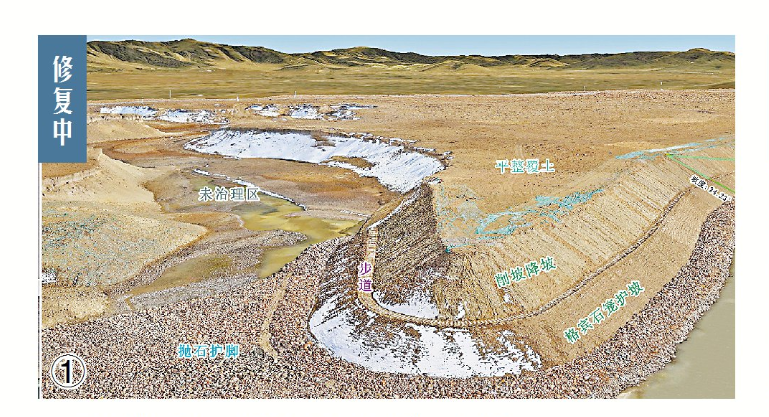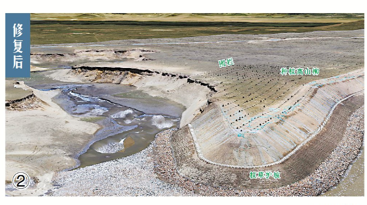 技术人员在系统中选取白河干流若尔盖县唐克镇段,通过三维实景图,5年间的变化一览无余:2020年6月,河流侵蚀了岸线,“洗劫”了邻近草场、道路;2023年5月,该区域生态修复项目开启,新建的斜坡式格宾石笼沿着河岸线排列,帮助稳固岸坡和流域沿线植被恢复;2024年8月,河流两岸绿意盎然……“系统可以真实、立体、时序化展示出工程治理进度和生态修复成效,相当于给治理中的若尔盖造一个虚拟‘双胞胎’。”杨显华说,除了全程记录和追溯,从2023年起,系统每年都会生成一份监测报告。