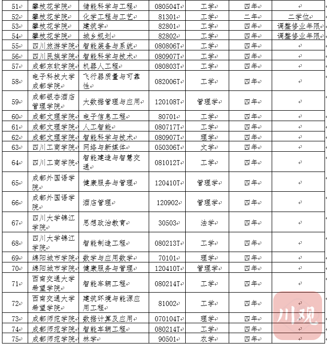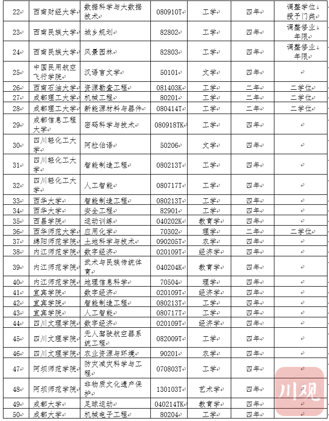 4月22日,教育部正式公布2024年度普通高等学校本科专业备案和审批结果。记者从教育厅获悉,四川高校共新增普通本科专业点48个,新增第二学士学位专业点20个,调整修业年限专业6个,调整学位授予门类专业1个,主动撤销专业点34个。本次备案、审批和调整的专业,将列入相关高校2025年高考招生。