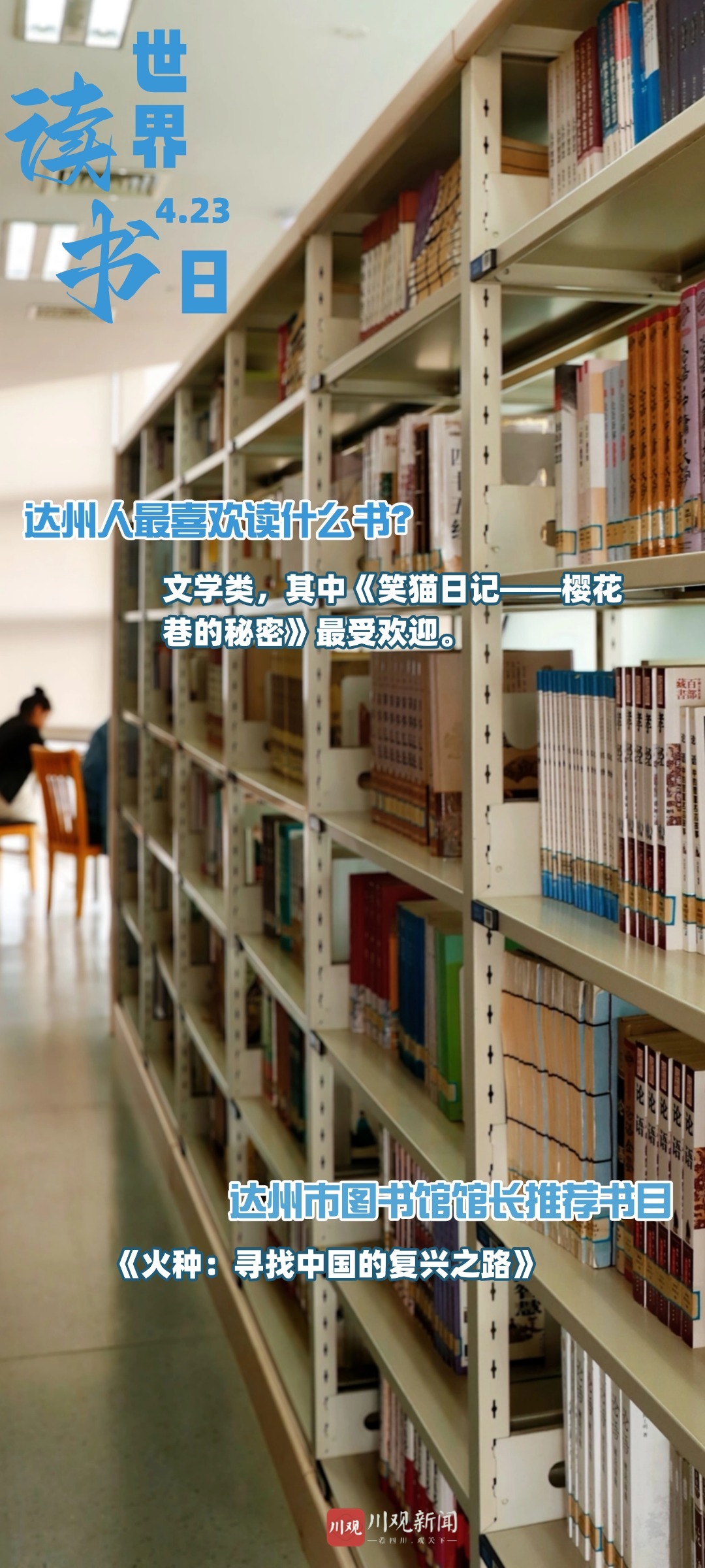 4月23日是世界读书日。达州市文旅局数据显示,为进一步营造“爱读书、读好书、善读书”的良好氛围,2024年,达州市新增工人文化宫、达川区钢琴博物馆、达州消防支队、蒲家革命烈士纪念馆、通川区八小金兰学校和达州看守所6个流动图书室,新增流动图书10900册。