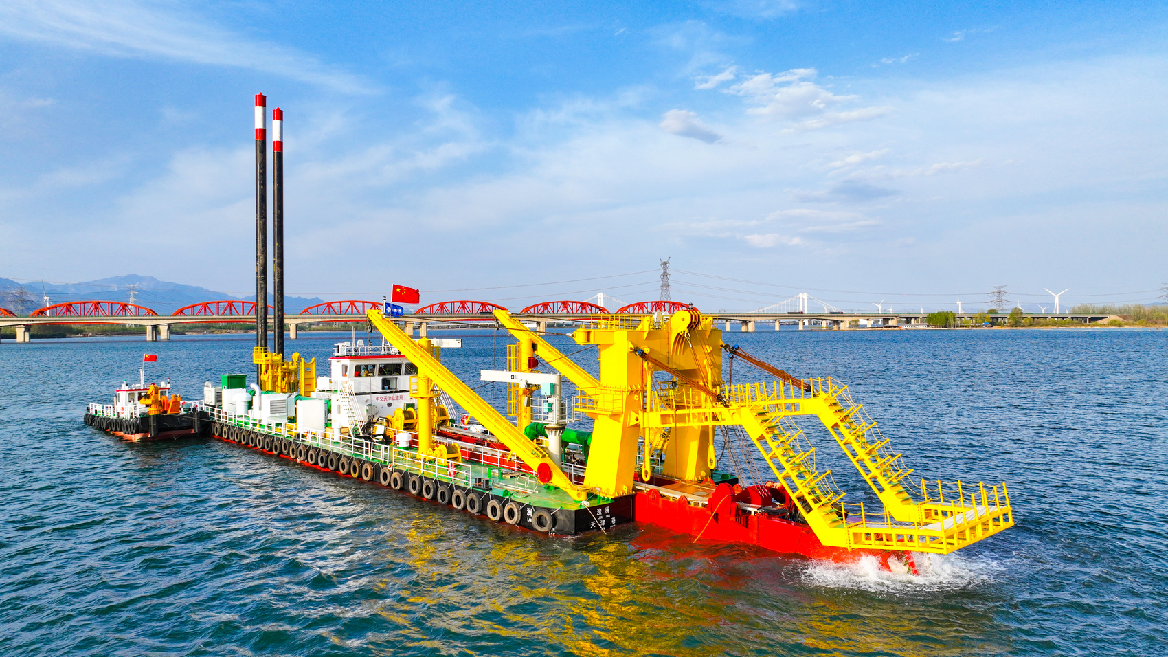 ▷由中交天津航道局有限公司自主设计研发的世界最大全电驱可拆装环保绞吸船——“浚澜”船,4月22日正式投入官厅水库清淤试点工程。这是该船首次下水投入使用。