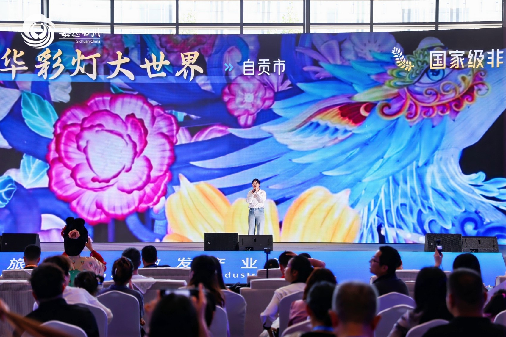 展会现场,四川展厅内的自贡展位以创意十足的文创陈列吸引众多目光。彩灯企业带来的光影互动展品生动诠释“中国灯城”魅力。“让我们一起循着古蜀文明的脉络,走进孕育‘盐龙灯’三绝的传奇之地——四川自贡。”在宣传推广环节上,推介官通过沉浸式讲解,带领观众穿越自贡千年文明:从恐龙之乡的远古奥秘到千年盐都的历史沧桑,从荣县大佛的庄严佛韵到西秦会馆的精美木雕,从璀璨灯会的视觉盛宴到盐帮菜的麻辣鲜香,全方位展现自贡“盐龙灯食”文化矩阵。