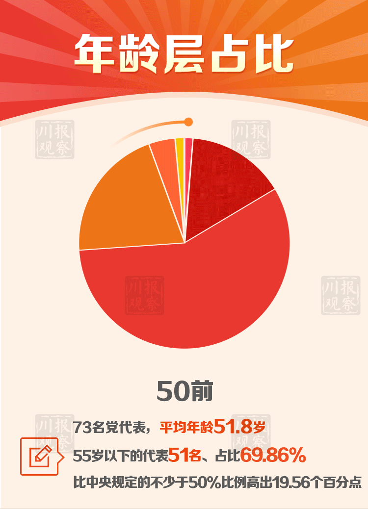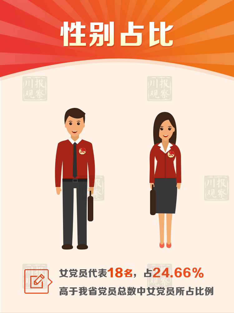 他们的产生,凝聚着全省党员的意志,承载着人民的期望。他们中,既有政府机关的领导干部,也有生产一线的基层党员;既有党龄超过60年的老党员代表,也有来自于90后的新生力量。结构数据的变化,折射出的却是四川党代表不变的先进性和广泛代表性。