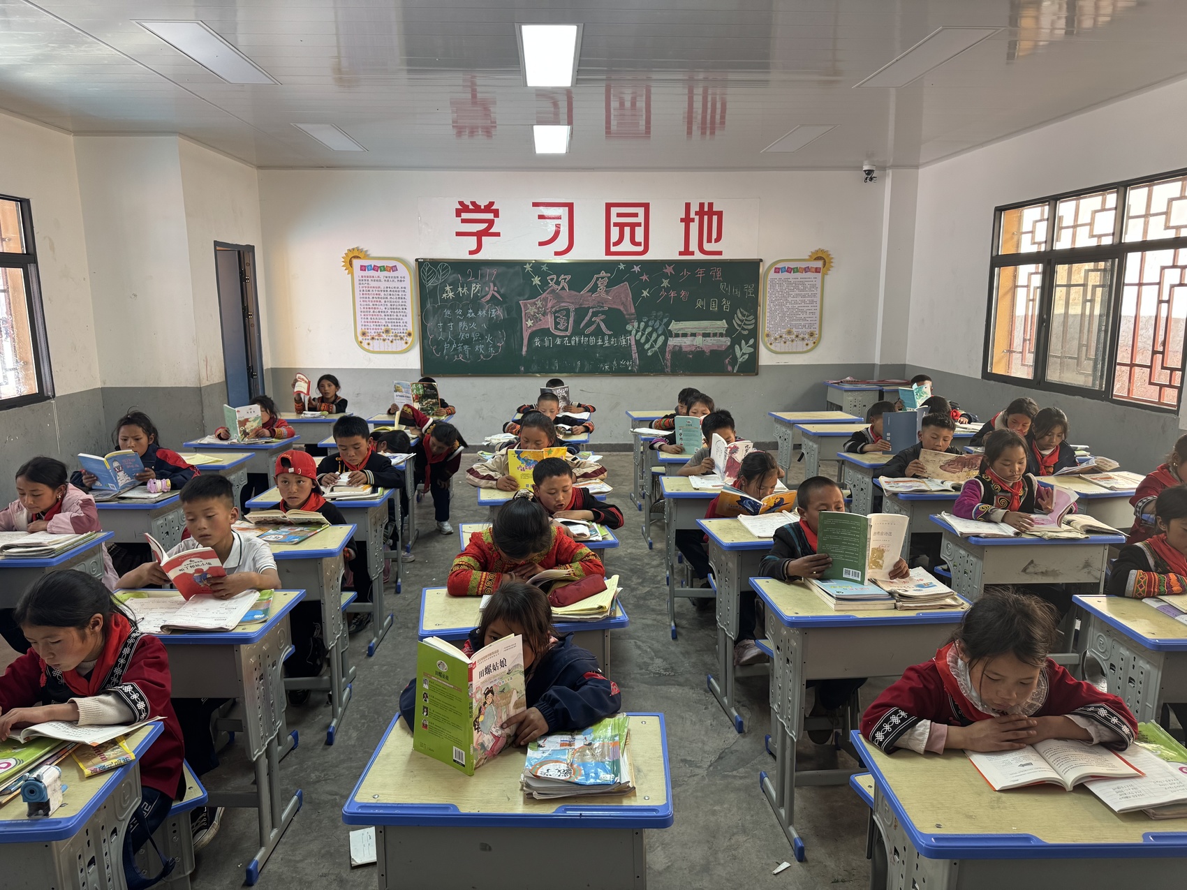 “哇!”孩子们欢快地叫出声,争先恐后捧起书本,一双双眼睛亮晶晶的。