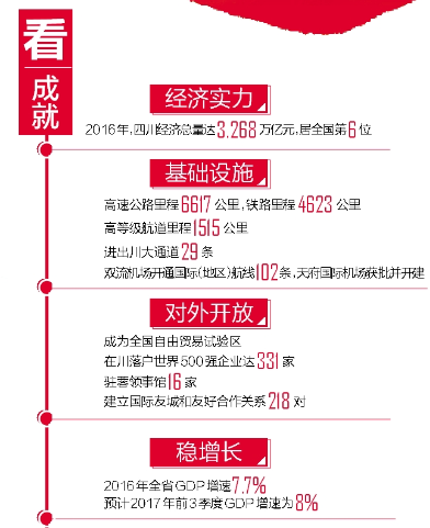 省委把全面创新改革作为引领发展的“一号工程”,列出9张清单有力推进。国务院首批在全国推广的13条全面创新改革试验经验中,四川贡献了8条。不沿边不靠海的四川,积极参与“一带一路”建设,放宽视野拓展新空间;中国(四川)自由贸易试验区获批成立,承接国家使命探新路。
