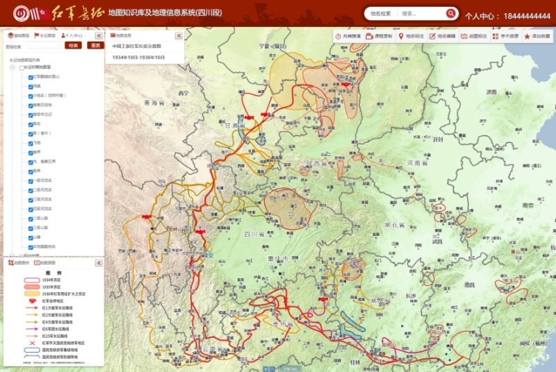 图为红军长征地图知识库及地理信息系统(四川段)截图