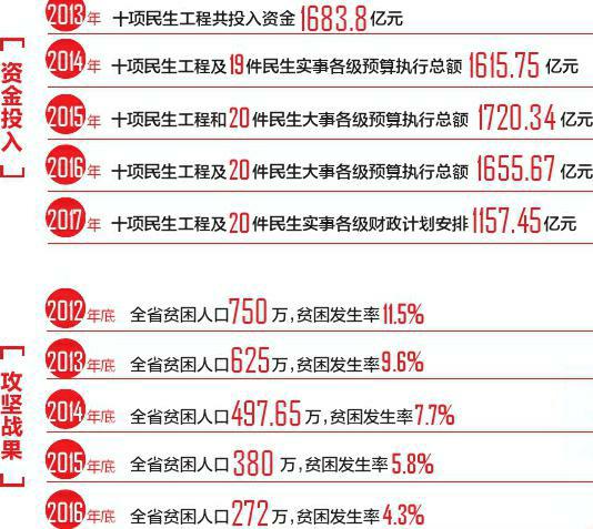 2013年,我省在十项民生工程的基础上新增八大民生改善事项,启动藏区六大民生工程。2014年,突出办好19件民生实事,大小凉山彝区“十项扶贫工程”总体方案出台。2015年-2016年,19件民生实事变成20件民生大事,向困难人群再倾斜。2017年,20件民生实事中,进一步加大了扩大就业、教育发展、社会保障、医疗卫生、百姓安居等重点民生领域项目的实施力度。