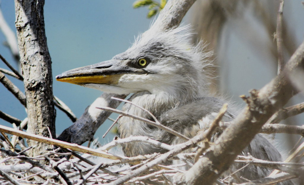 密云水库鸟岛上等待哺育的小苍鹭(4月23日摄)。