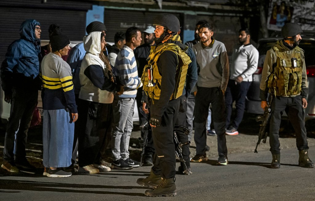 4月22日,安全人员在印控克什米尔地区帕哈尔加姆镇附近警戒。