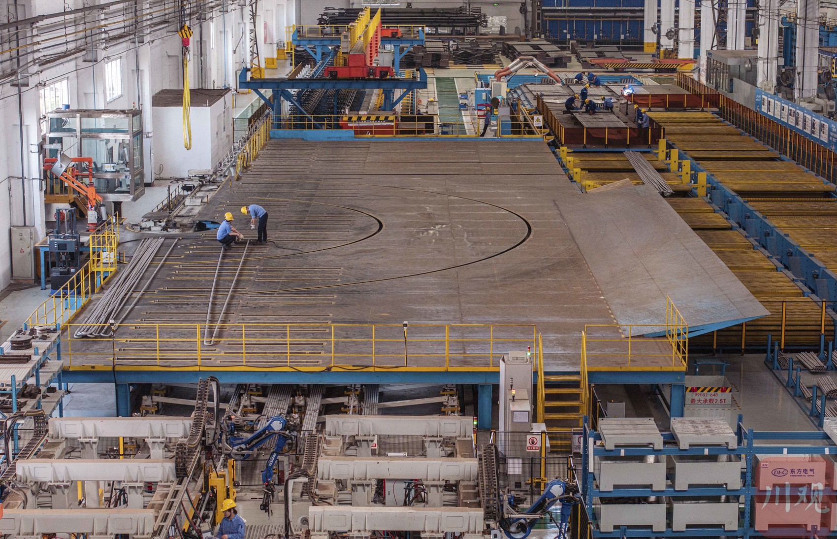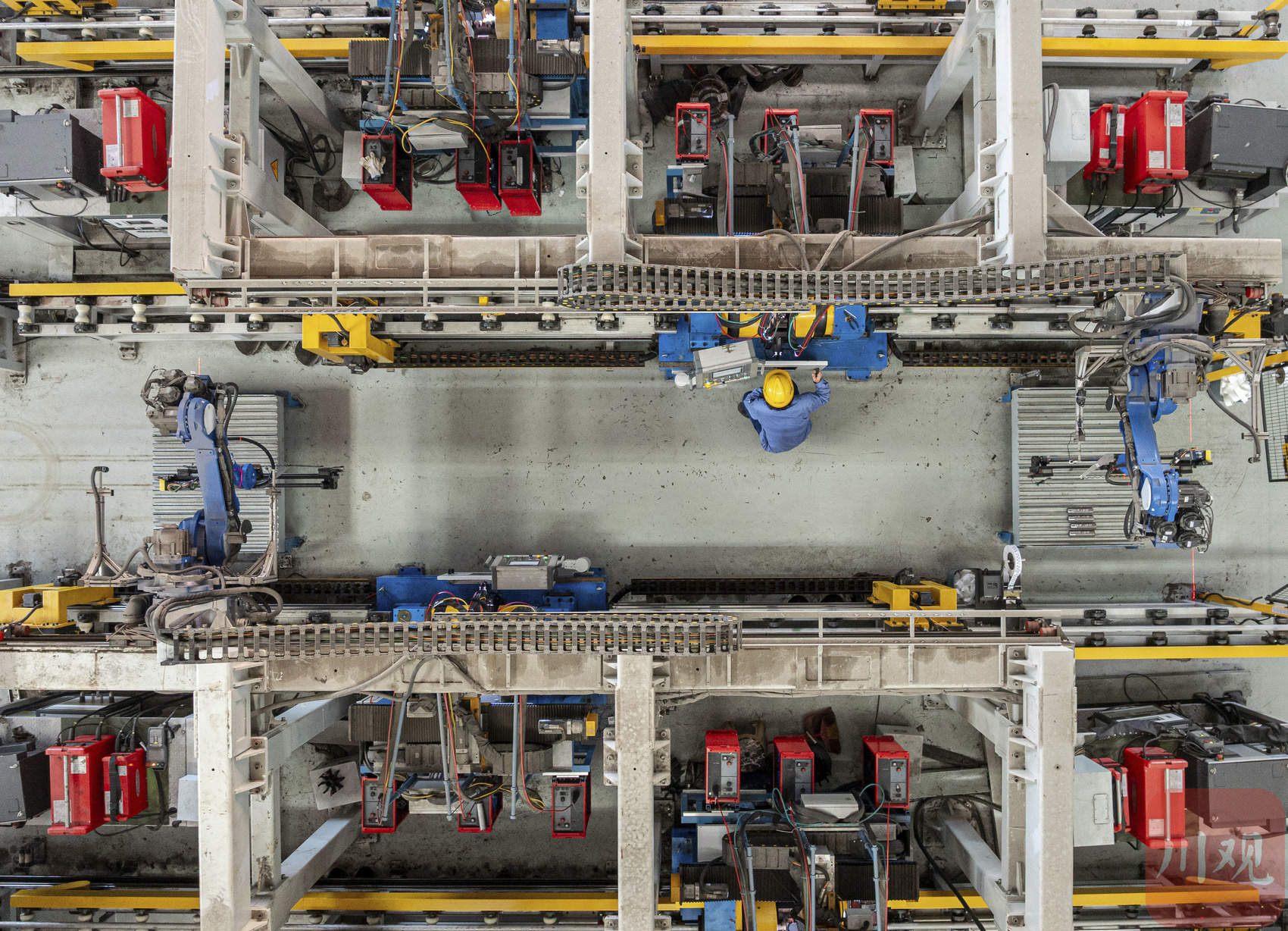 东方锅炉自贡基地蛇形管数制·智联工厂内,工人在生产线上忙碌。