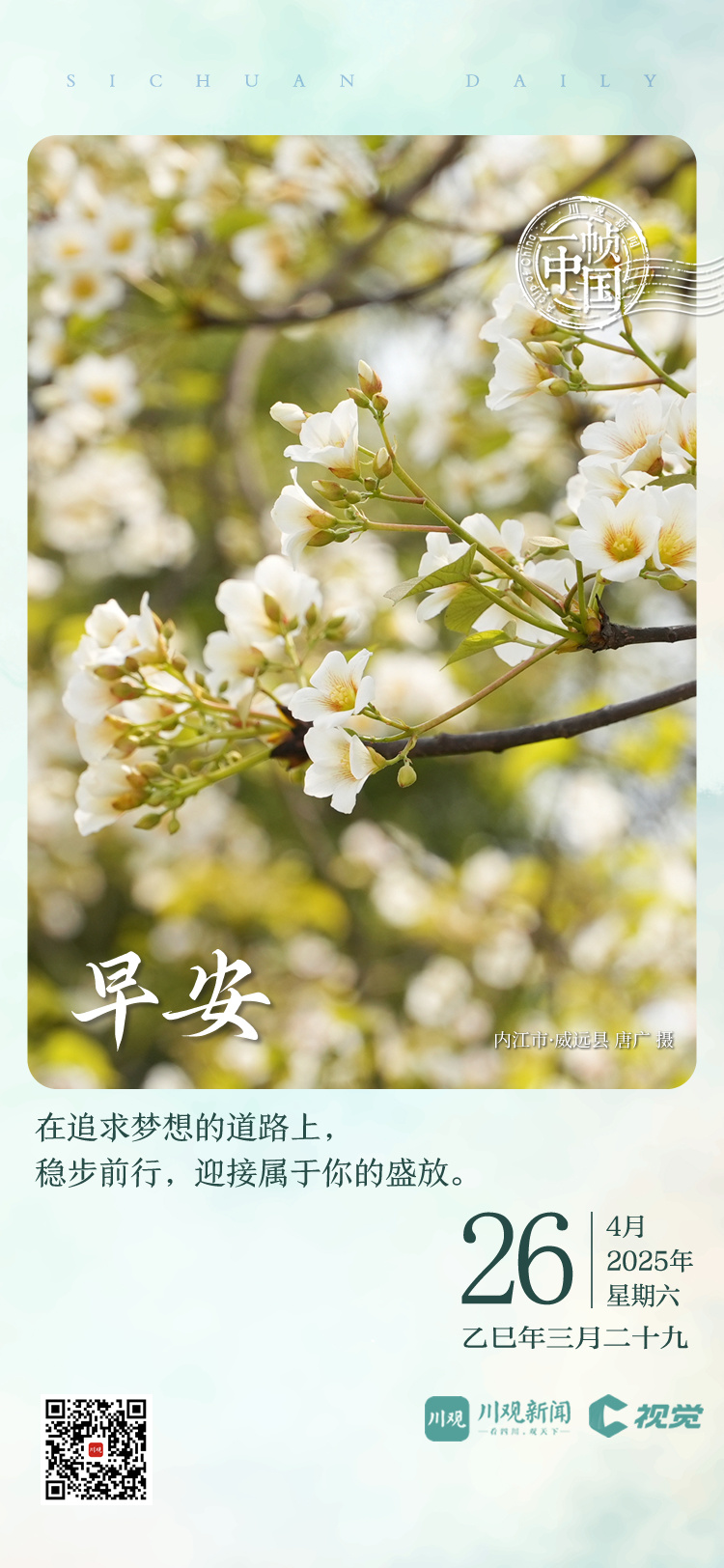 今天的《一帧中国》,川观新闻带你来到内江市威远县山王镇太平村,欣赏桐子花开如春雪的奇景。