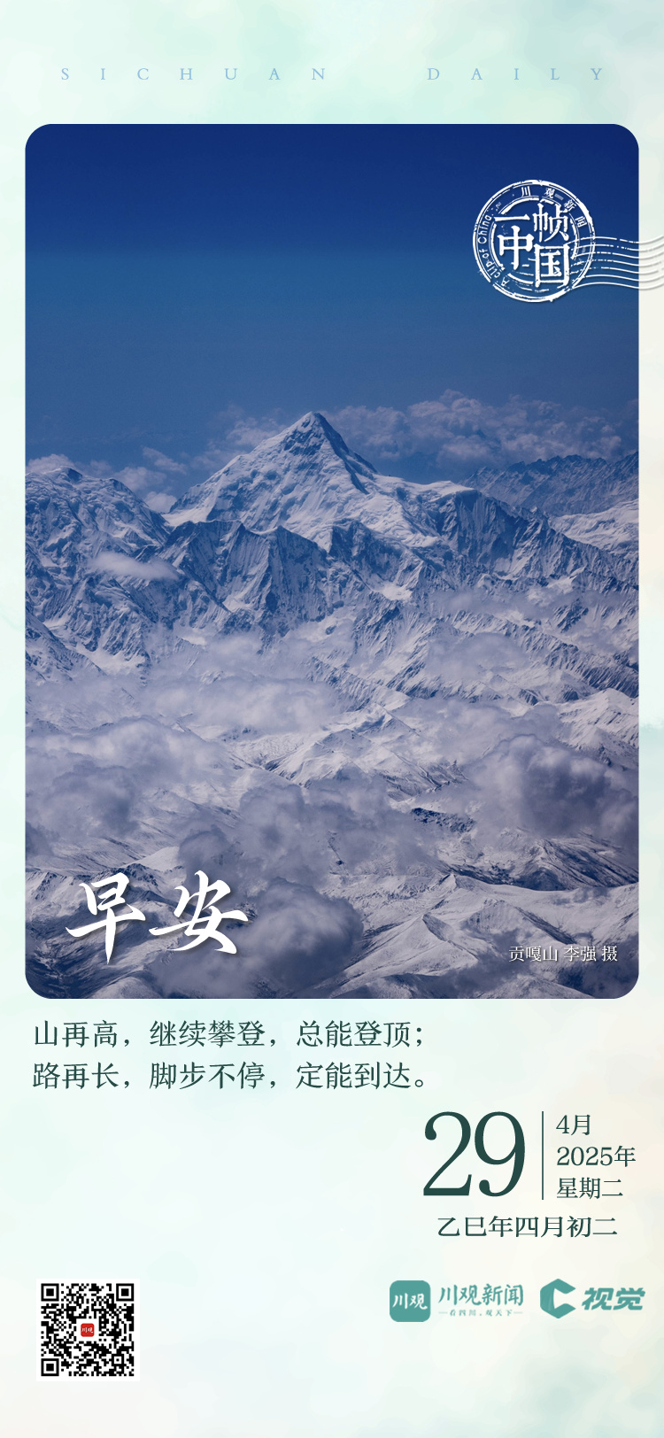 今天的《一帧中国》,川观新闻带你飞越川西雪山群峰,遥望“蜀山之王”贡嘎山的雄姿风采。