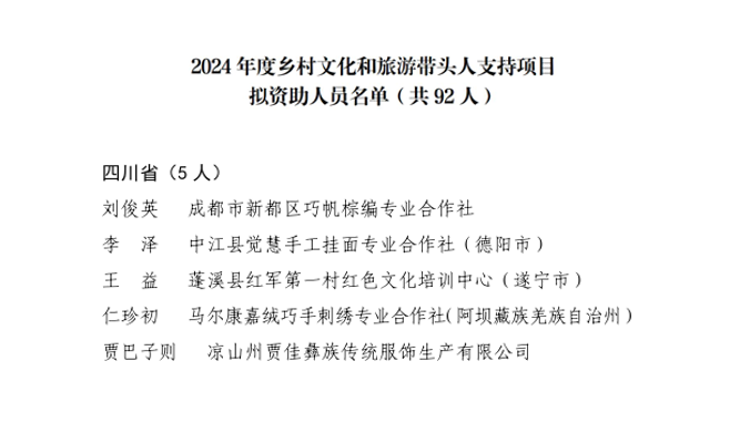 德阳中江县以“中江手工挂面”传统制作工艺而出名,依托这一资源优势,当地将非遗与乡村旅游相结合,以“手工挂面产业+田园民宿+文化旅游”为模式的产业格局,让村庄焕发新生机。近日,文化和旅游部公布了2024年度乡村文化和旅游带头人支持项目入选人员和资助人员名单。在这份名单中,获得资助人员的全国共有92人,四川仅有5人入选。来自德阳的中江挂面非遗工坊带头人李泽成为其中1人。
