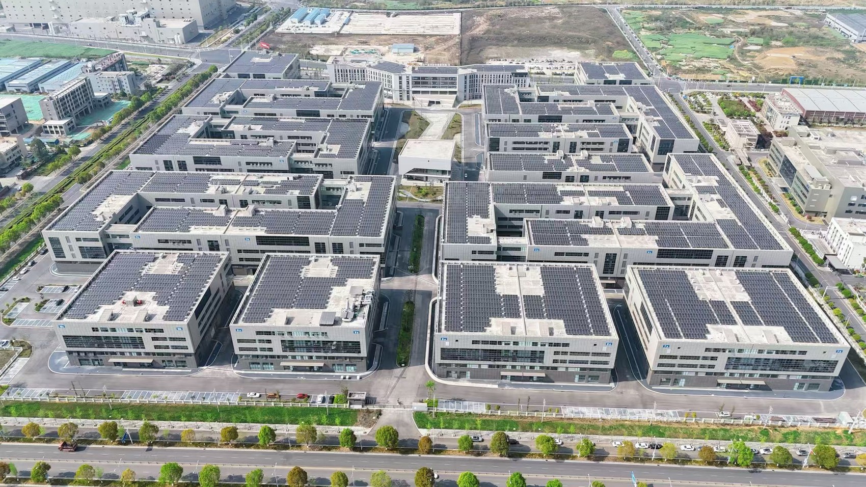 川观新闻记者走进产业园,登上一栋建筑的楼顶,在阳光的照耀下,一块块深蓝色的光伏板正不断将太阳能转化为绿色电能。据介绍,该项目依托园区内25栋标准化厂房的可利用屋顶资源,共采用了12512块N型双面双玻高效光伏组件,总装机容量约8MW。