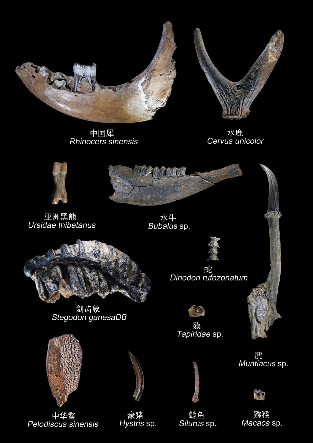 四川资阳濛溪河遗址群出土的部分动物化石。