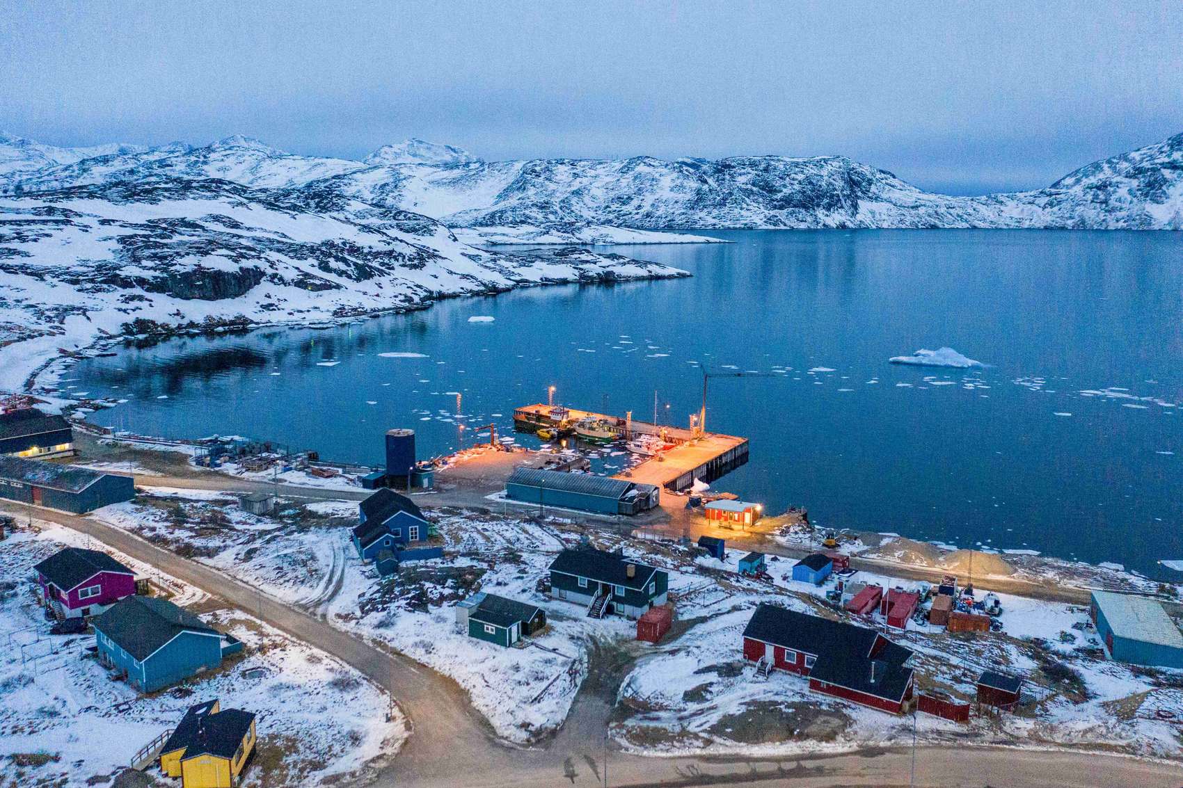 丹麦自治领地格陵兰岛纳尔萨克镇的码头(无人机照片)。新华社记者彭子洋摄