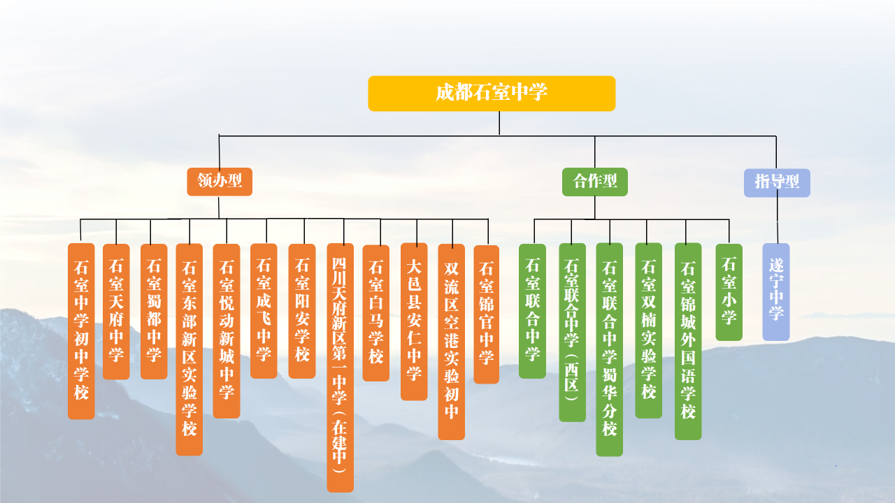 据悉,成都石室中学教育集团成立于2009年,以成都石室中学为龙头学校,学校设两个校区,包括文庙校区(青羊区文庙前街93号)、北湖校区(成华区龙瑞一路9号)。目前,成都石室中学教育集团共有20所学校,31个办学点。其中,19所成员学校分为领办型、指导型与合作型。