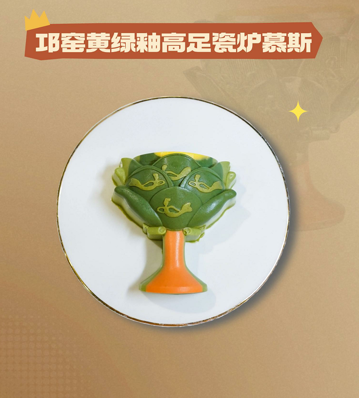 邛窑瓷炉慕斯:抹茶流心从“釉裂纹”中淌出,考古式吃法趣味十足。