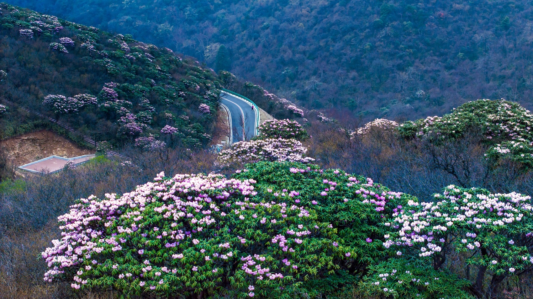 其中,最引人瞩目的为树龄长达1300年的“四川杜鹃王”,历经风雨沧桑,至今仍枝繁叶茂、花开如瀑,是国内少有的超千年的杜鹃古树之一。