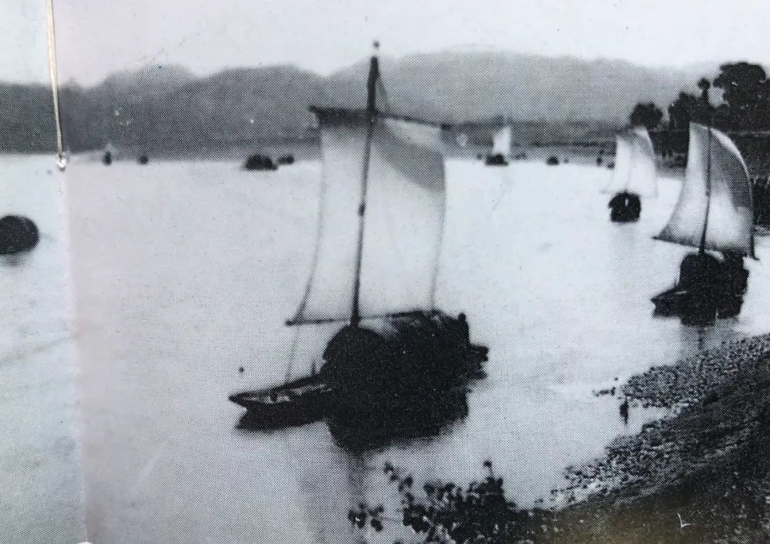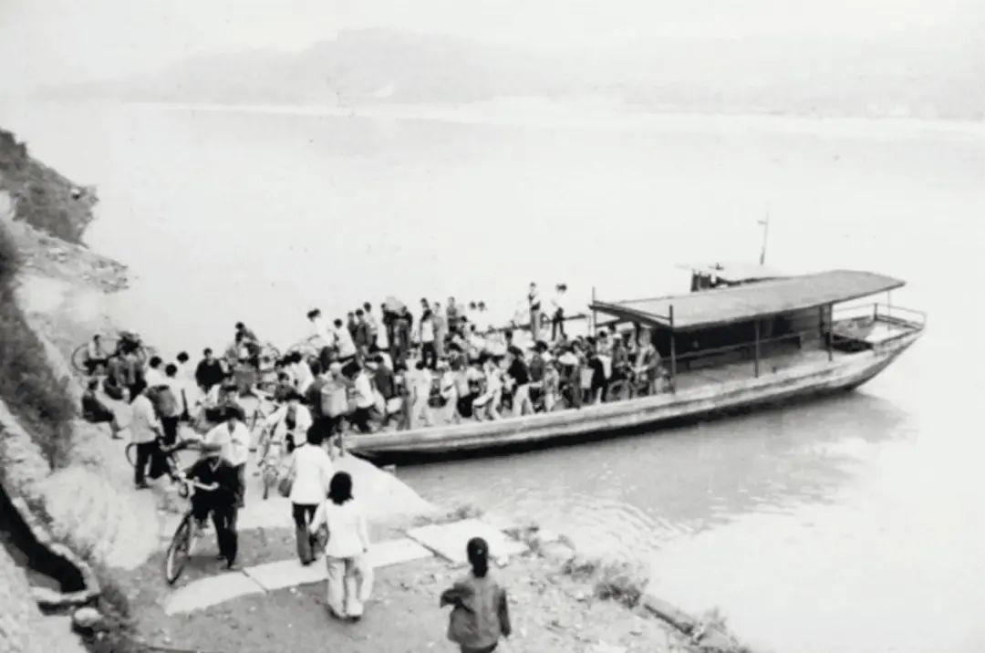 ▲建桥前,眉山岷江两岸的群众乘坐渡船通行。