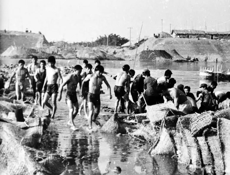 干部群众用竹笼围堰、肩挑背扛,吃住都在河坝。当时分班修建,这个班干了下个班接着干,不分黑夜白昼······在大家齐心协力下终结了千年“隔江相望”的历史。