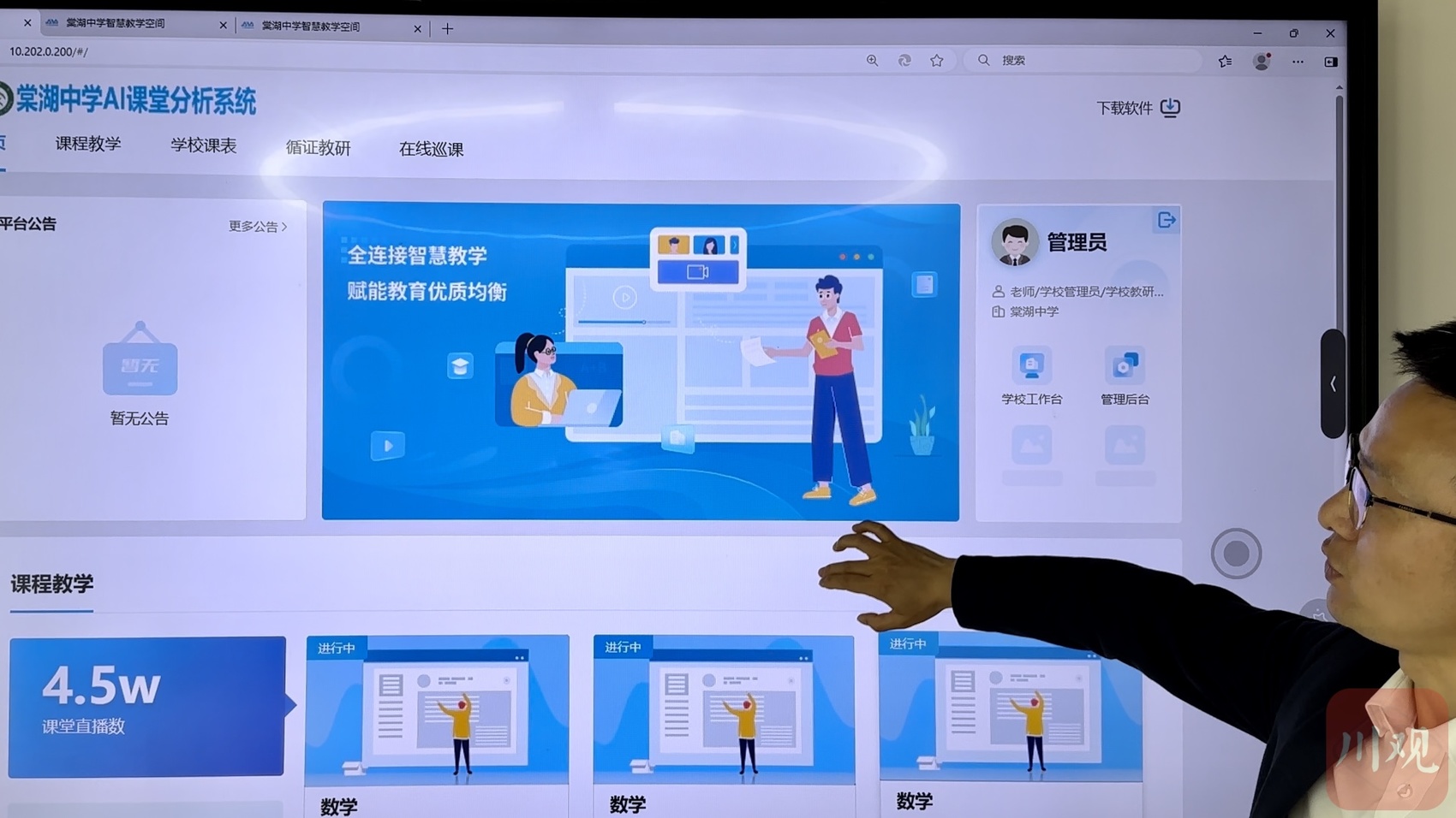 在教学场景之外,棠湖中学信息中心副主任杨维国则提到了另一个改变——教研场景。相较于以往的教研讨论,现在有了AI,老师们可以查看更多的教学视频,不用人工梳理就能得到一系列教学数据,可以参考、讨论的素材和数据大幅度提升,教研的效率自然也大幅提升。