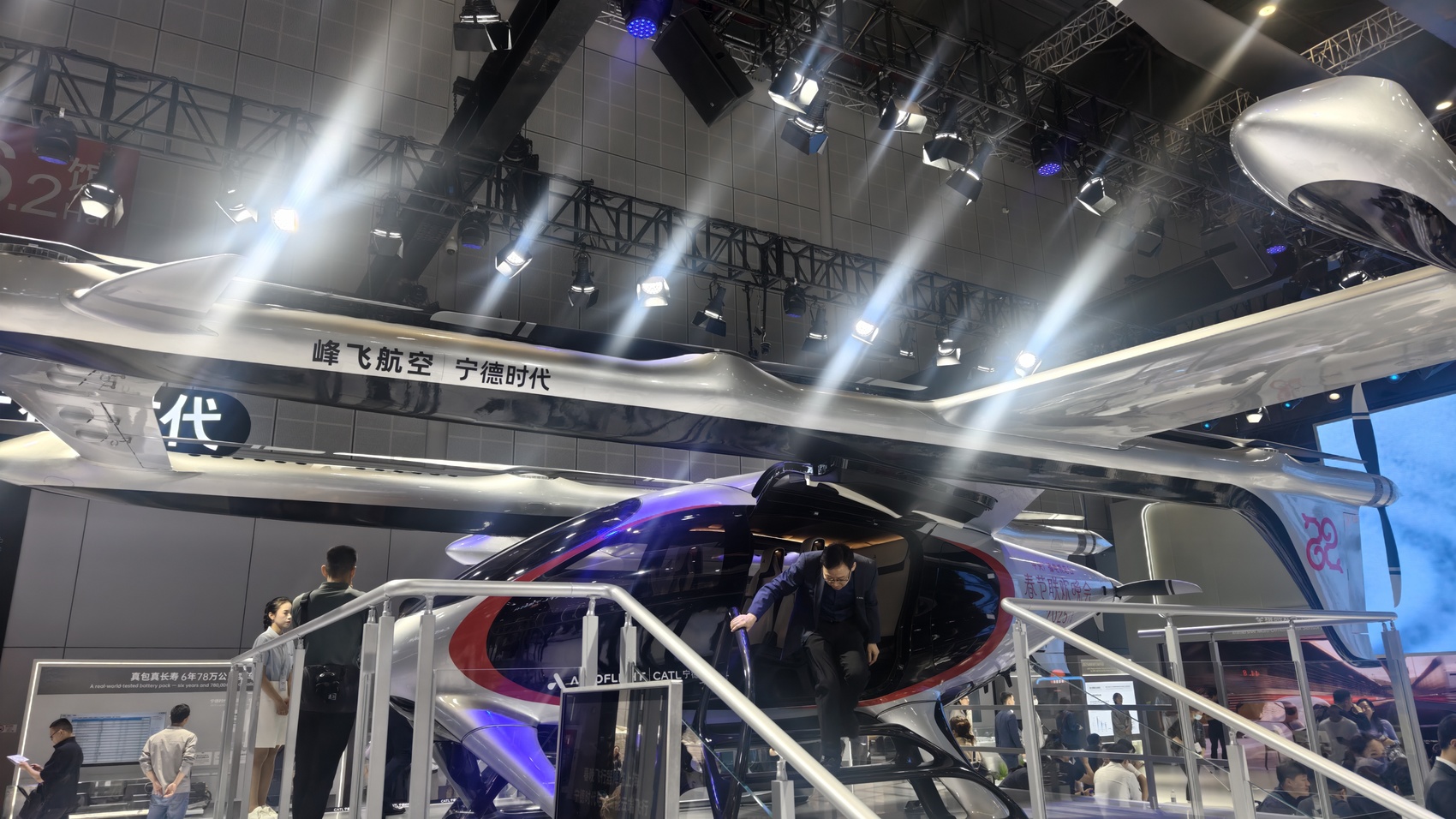 记者在宁德时代展位看到,搭载宁德时代电池的峰飞航空2吨级eVTOL(电动垂直起降飞行器)航空器占据“C位”。这款“飞行汽车”有着巨大的身板,内设5个座椅和数字化座舱,采用“升力+巡航”复合翼构型,兼具垂直起降与水平巡航功能,巡航速度可达每小时200公里,今年春节期间完成了全球首次吨级以上eVTOL夜航。