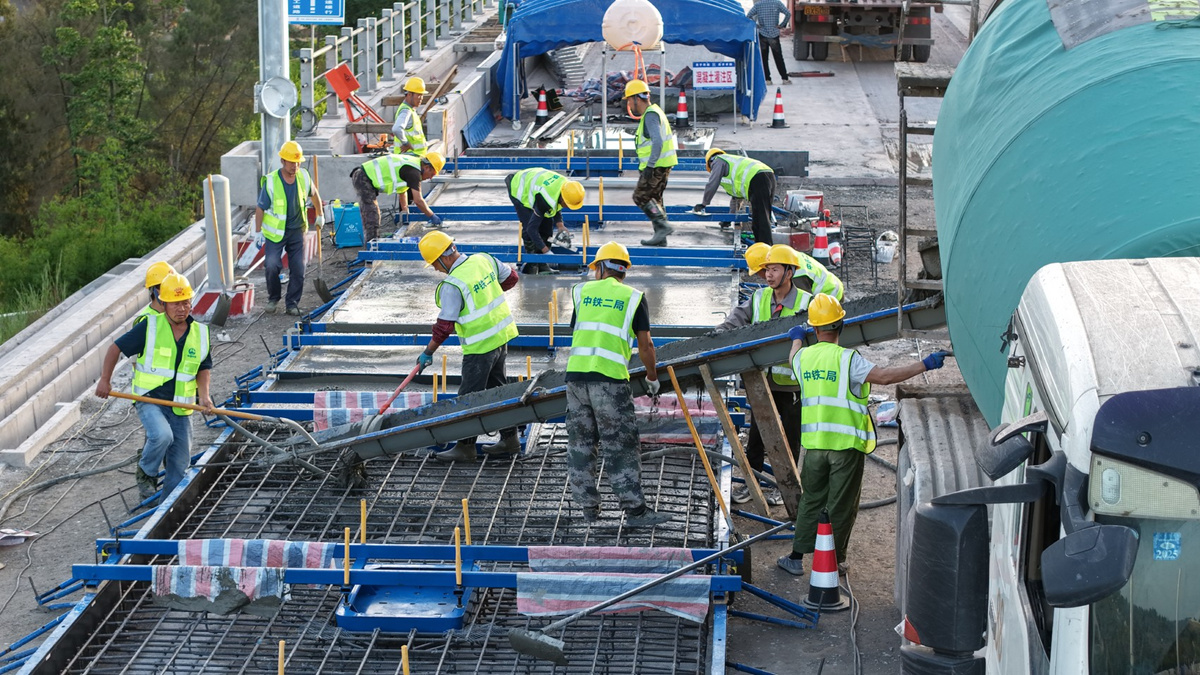 无砟轨道施工是高铁铺轨前的最后一道关键工序,施工精度要求高、工艺复杂,直接影响列车运行平稳性和乘客舒适度。首件工程浇筑历经基面处理、精密测量、钢筋网安装、底座板浇筑等十余道严格工序。中铁二局成达万高铁项目技术负责人郭平介绍,团队自主研发的无砟道床智能精调系统,运用自动化、数字化手段,实现自动精调,实时调整轨排三维位置,实现几何尺寸误差严格控制在±1毫米以内。