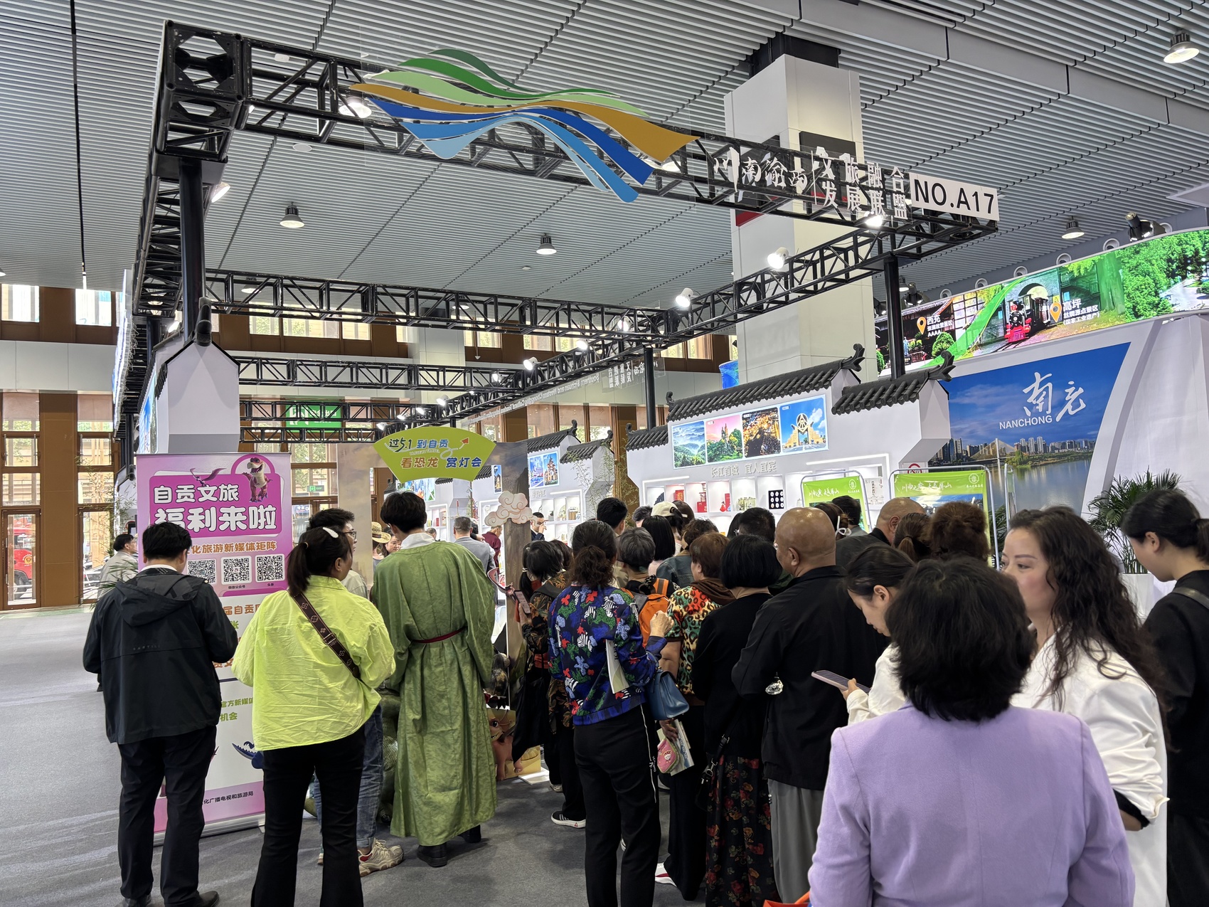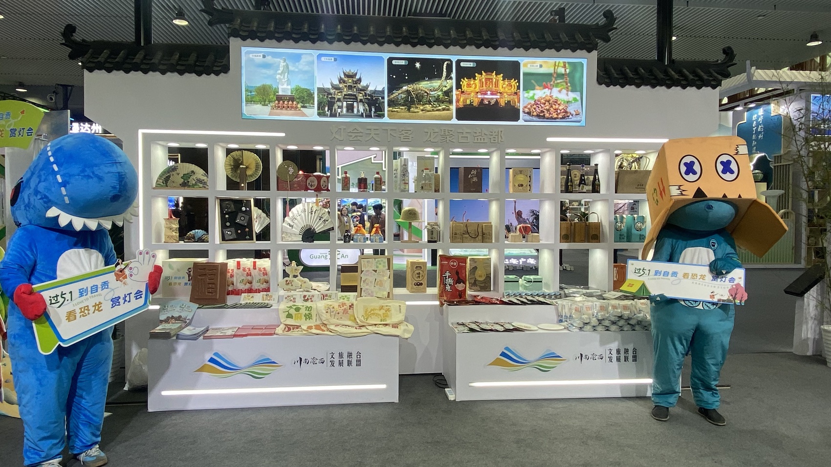 自贡市作为川南渝西文旅融合发展联盟2025年轮值主席单位,携手重庆市大足区,四川省泸州市、内江市、宜宾市组团参展。川南渝西文旅融合发展联盟展位以“乐享巴蜀风情 畅游川南渝西”为主题,以川南渝西民居为设计灵感,生动呈现川南渝西的地域文化元素,让游客沉浸式感受独特的巴蜀风韵。