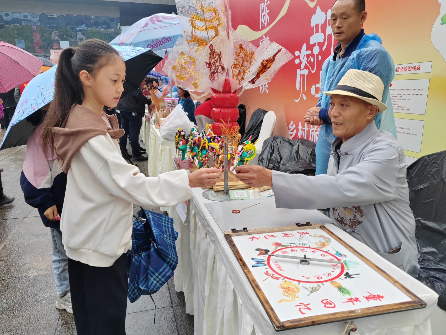 虽然天空下着濛濛细雨,却阻止不了现场观众的热情。“我和家人很早就来占位置了,参赛选手歌唱得好,现场氛围也很好,还能体验资中的美食和非遗文化,真的很高兴。”市民李慧表示。