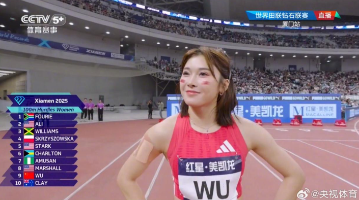 ▷昨(26日)晚,2025钻石联赛厦门站女子100米栏决赛,川妹子吴艳妮以13秒00刷新个人赛季最佳成绩,获得第七名。详情>>